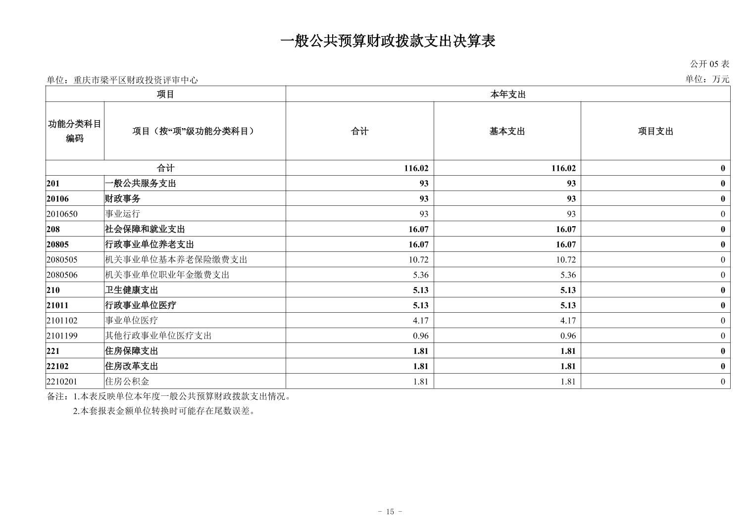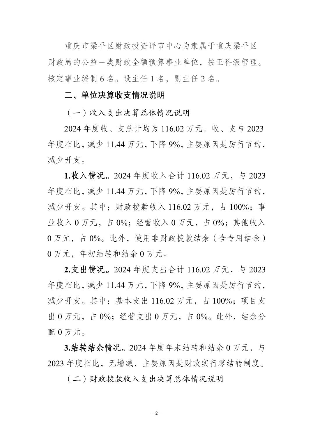 标题 | 重庆市梁平区财政投资评审中心2024年度决算公开说明 |