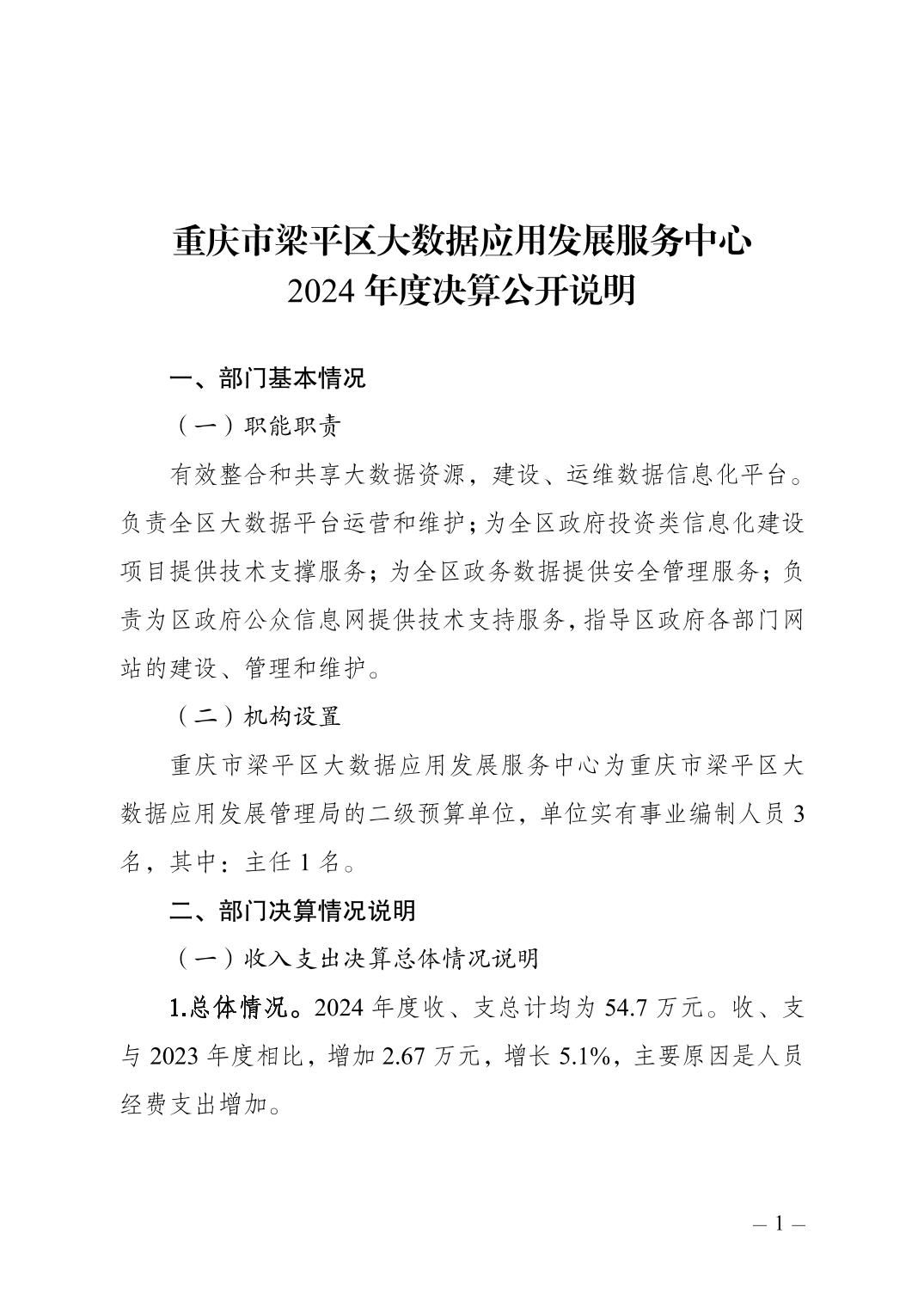 标题 | 重庆市梁平区大数据应用发展服务中心2024年度决算公开说明 |