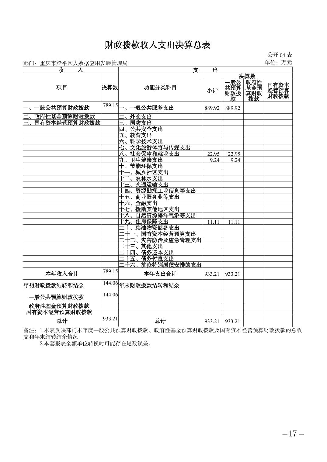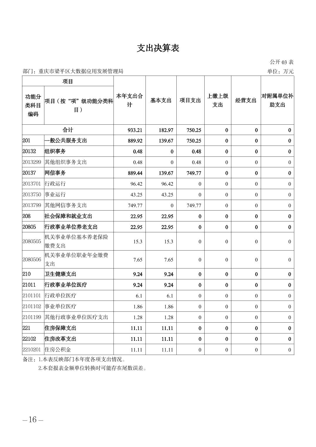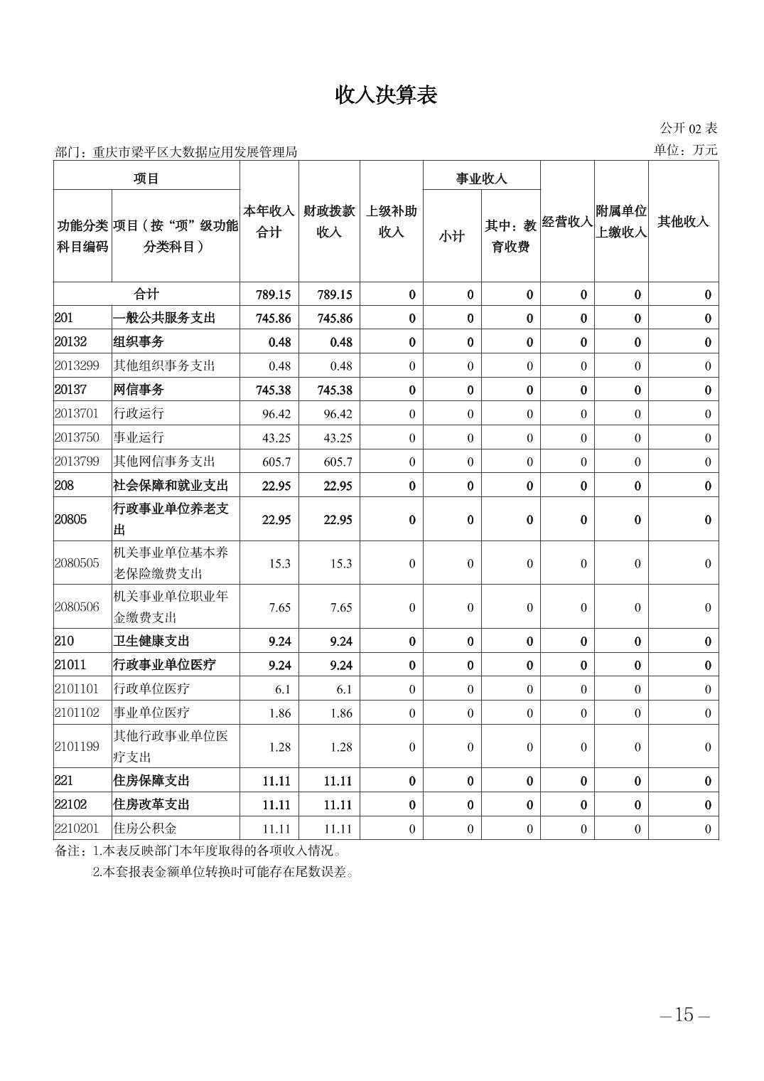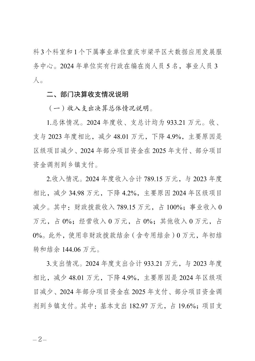 标题 | 重庆市梁平区大数据应用发展管理局2024年度决算公开说明 |