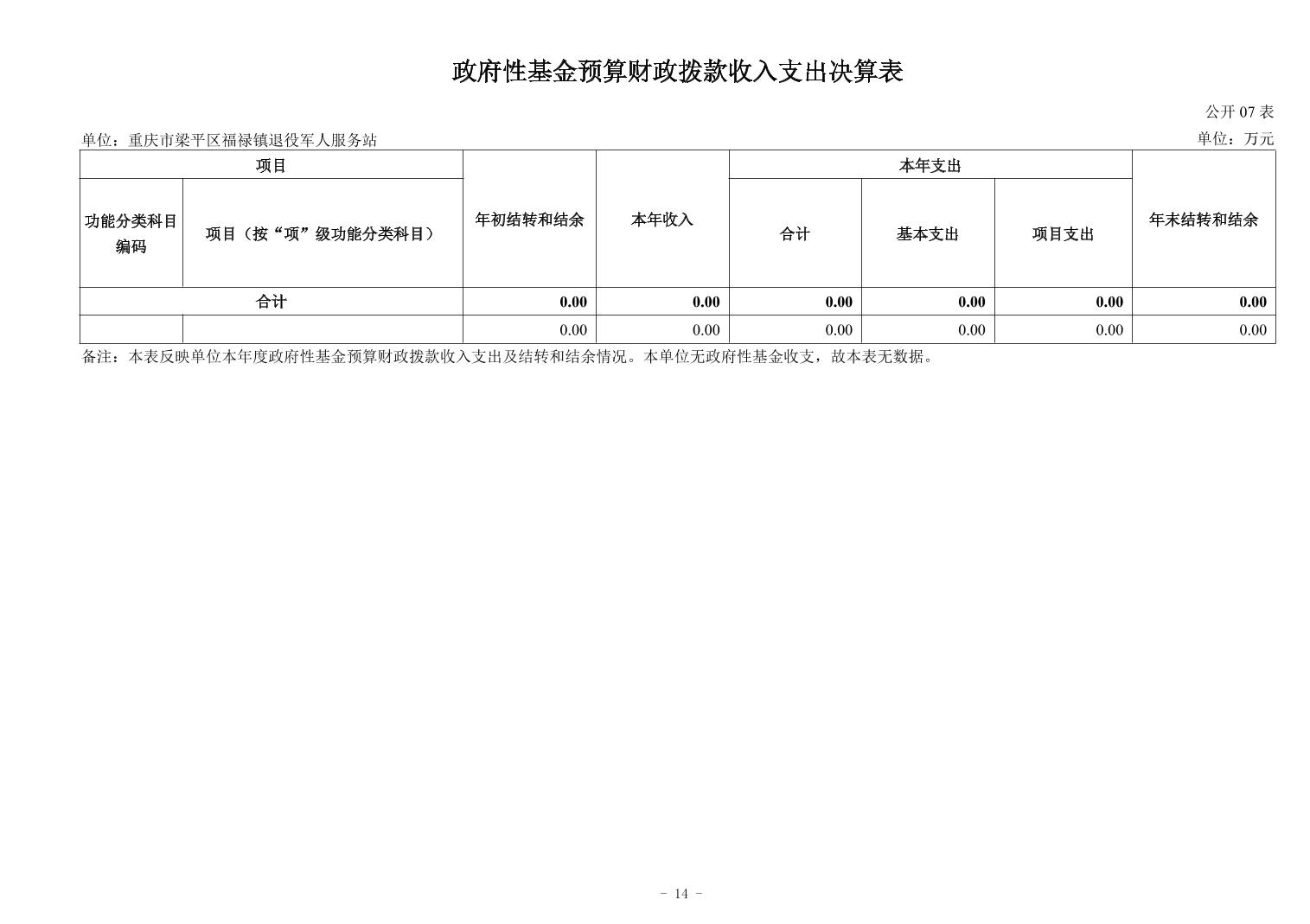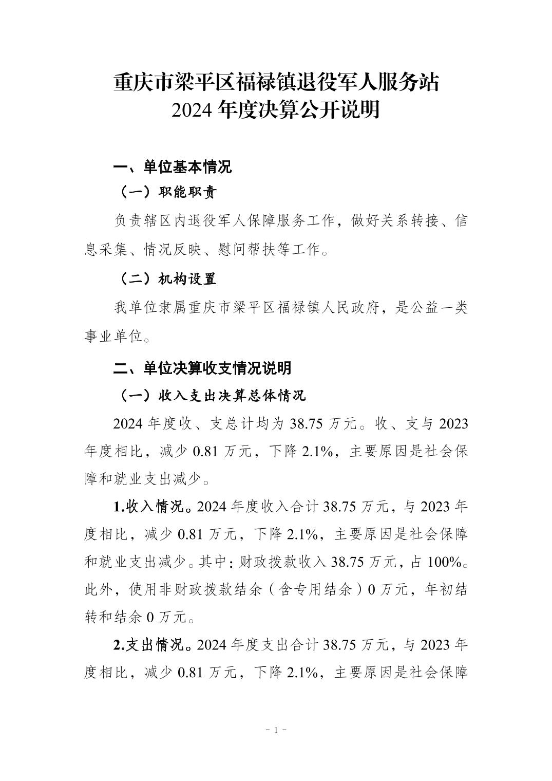 | 标题 | 重庆市梁平区福禄镇退役军人服务站2024年度决算公开说明 |