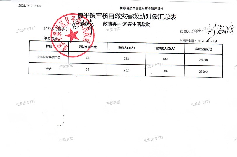 | 标题 | 复平镇审核自然灾害救助对象汇总表(冬春生活救助) |