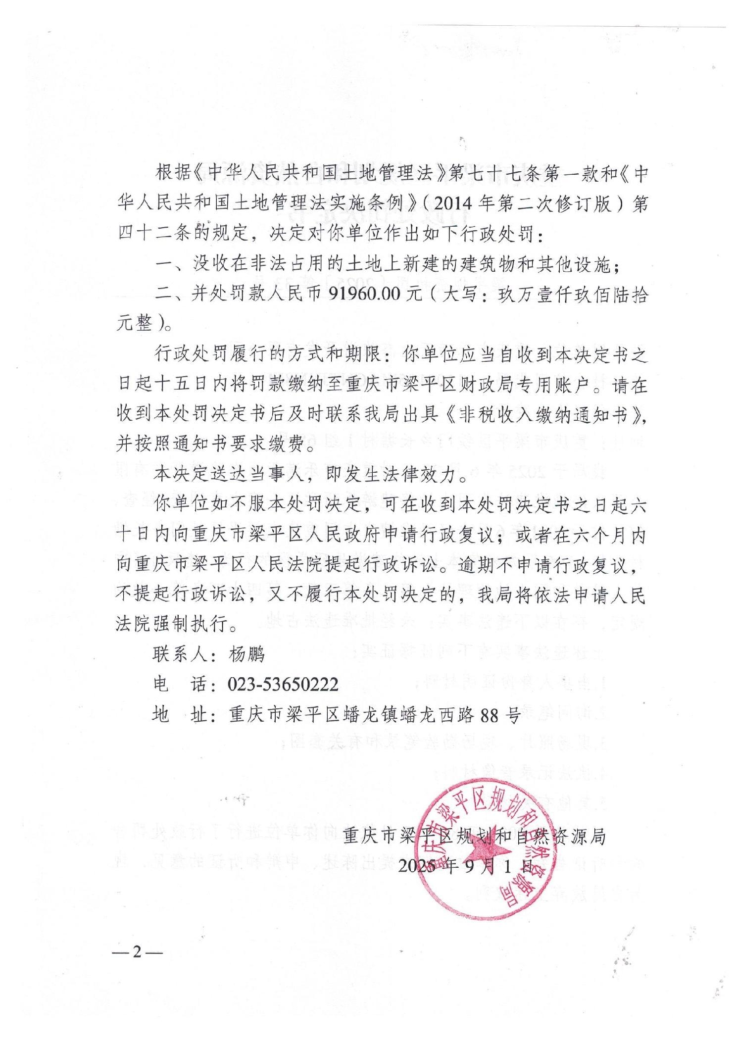 标题 | 重庆市梁平区规划和自然资源局行政处罚决定书(梁平规资执罚[2025]33号) | ||