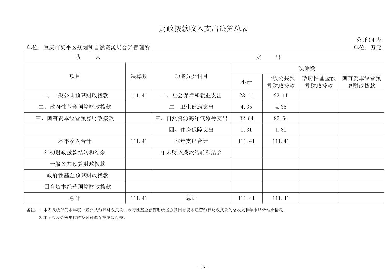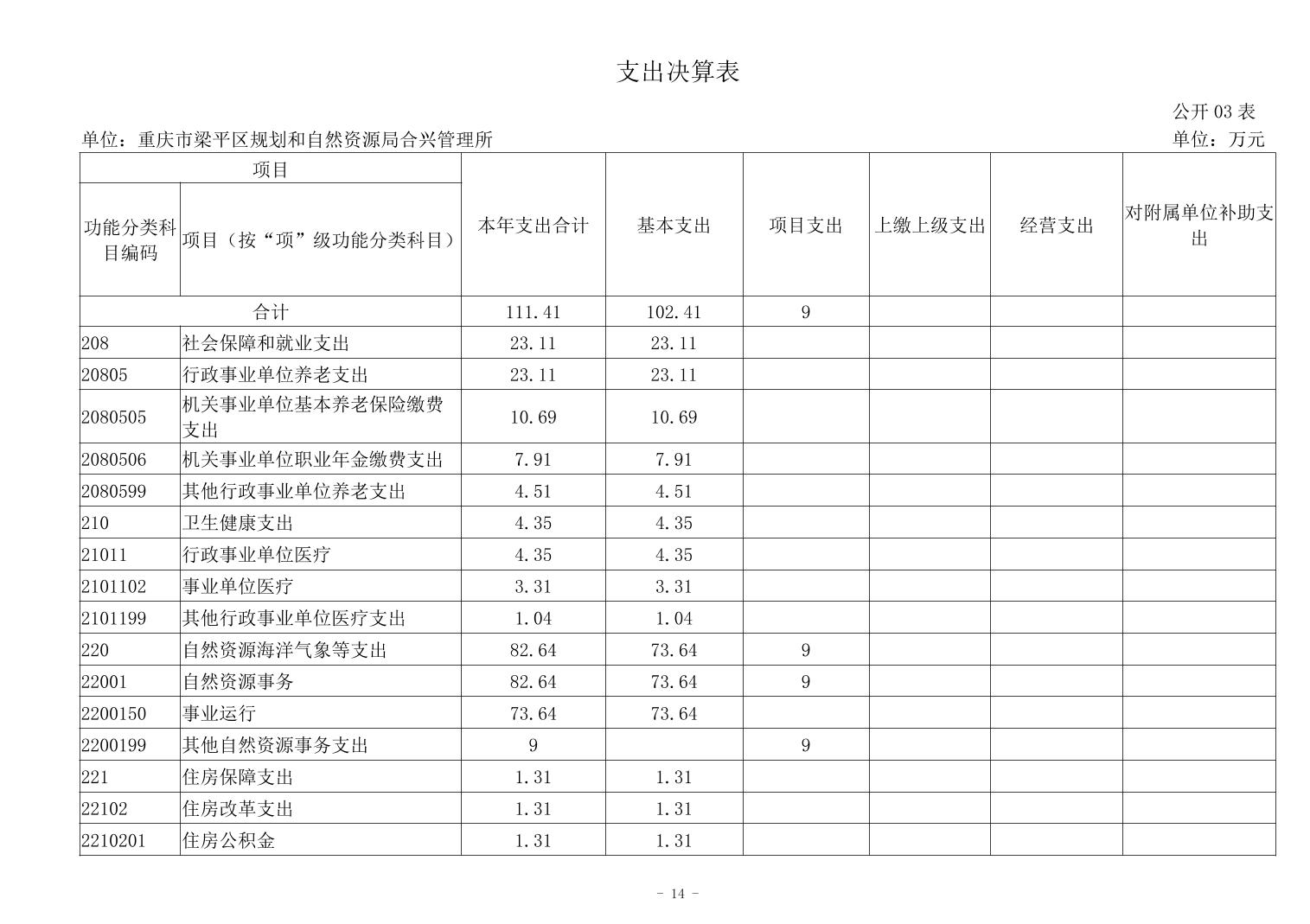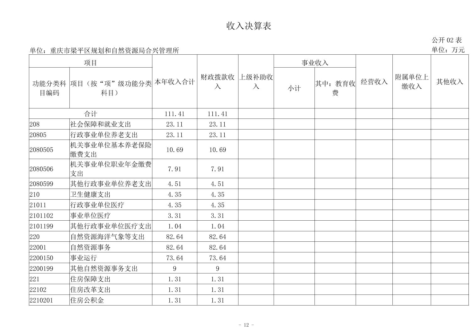 标题 | 重庆市梁平区规划和自然资源局合兴管理所2024年度决算公开说明 | ||