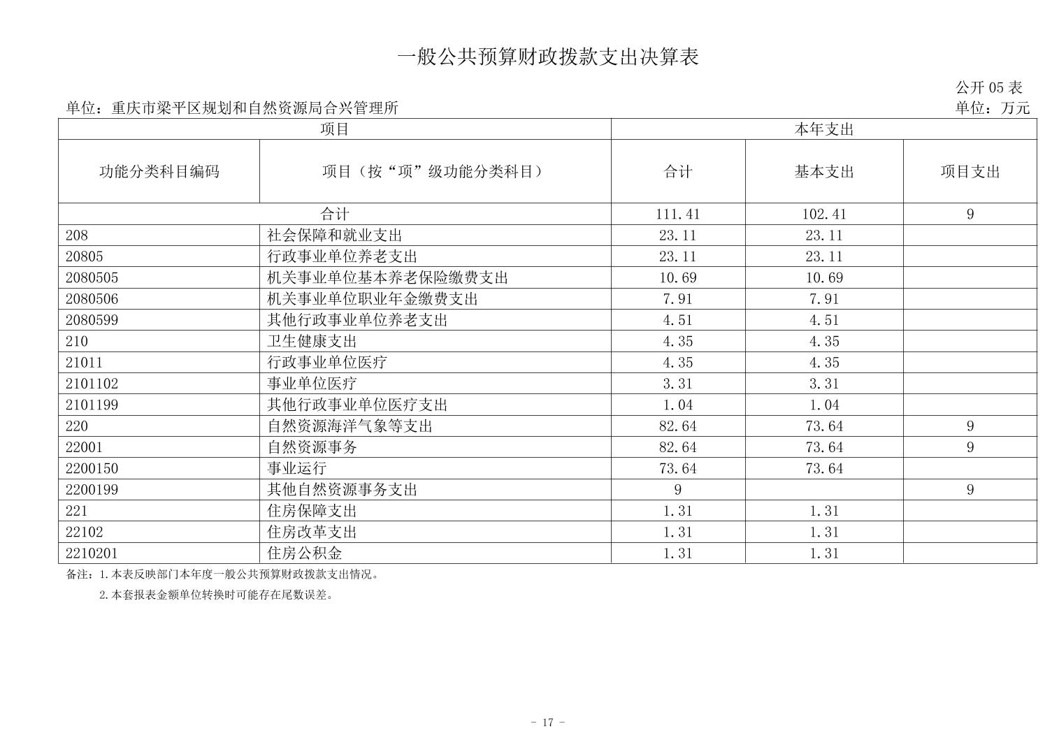 标题 | 重庆市梁平区规划和自然资源局合兴管理所2024年度决算公开说明 |