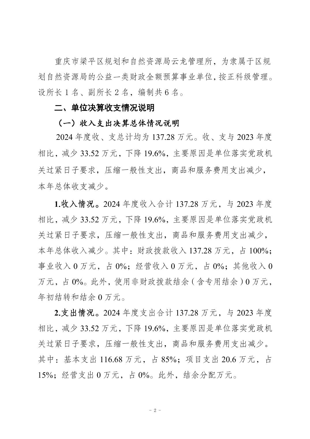 标题 | 重庆市梁平区规划和自然资源局云龙管理所2024年度决算说明 |