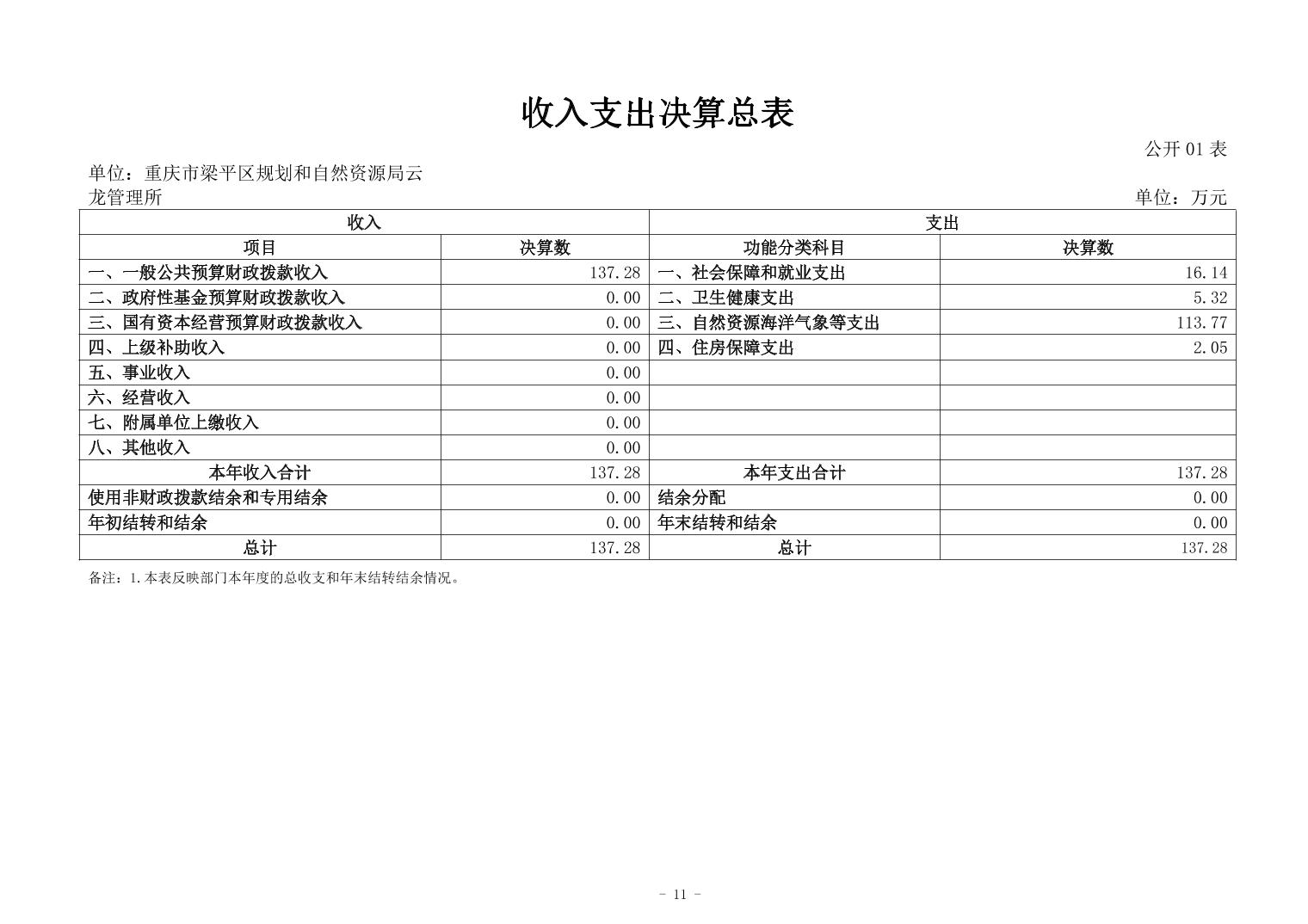 标题 | 重庆市梁平区规划和自然资源局云龙管理所2024年度决算说明 | ||