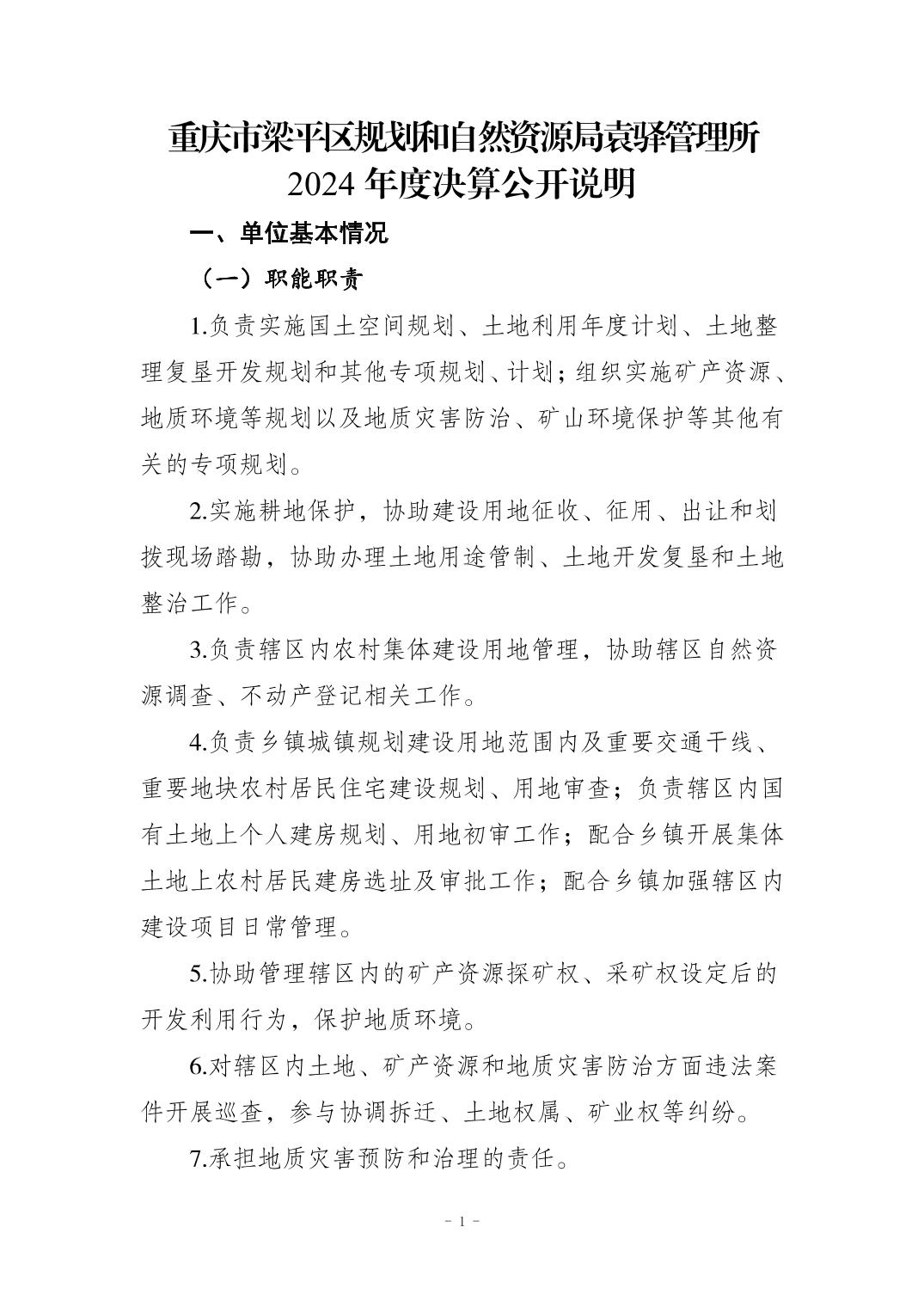 标题 | 重庆市梁平区规划和自然资源局袁驿管理所2024年度决算公开说明 |