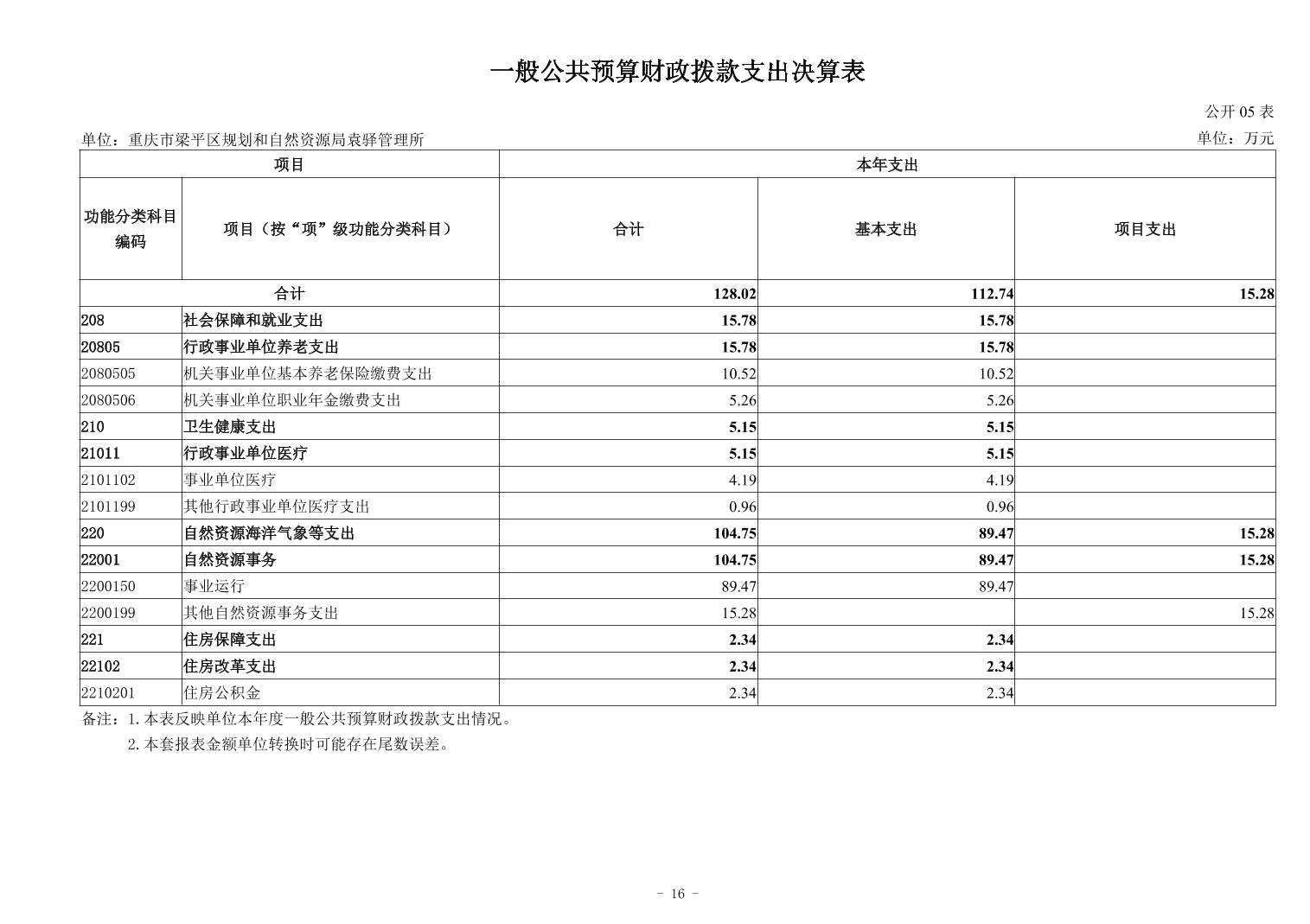 标题 | 重庆市梁平区规划和自然资源局袁驿管理所2024年度决算公开说明 | ||