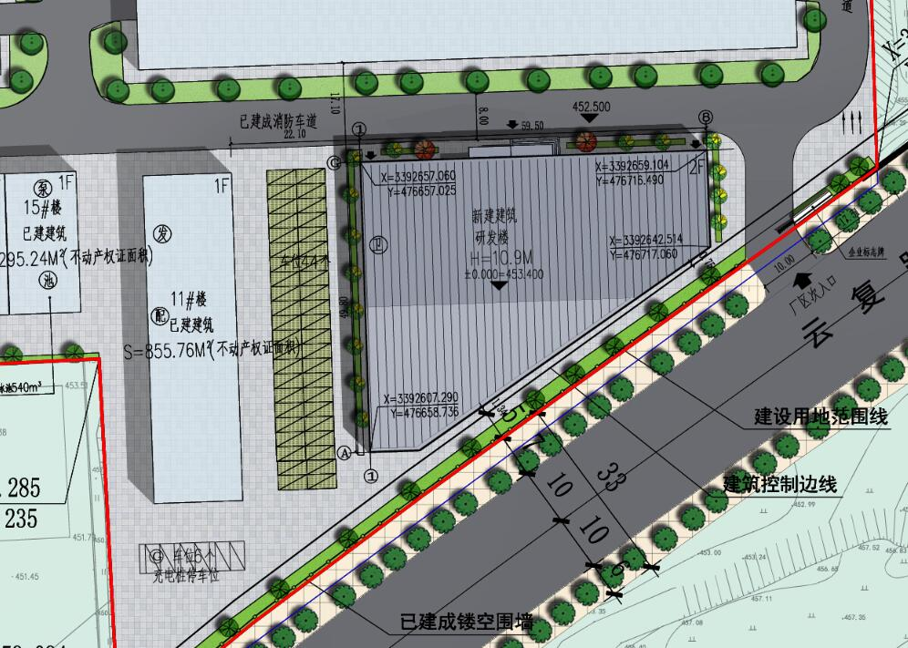 2.将原拟建的2层钢筋砼结构研发办公楼建筑调整为1层钢结构柚子车间厂房建筑;相应配建停车位减少,满足要求。