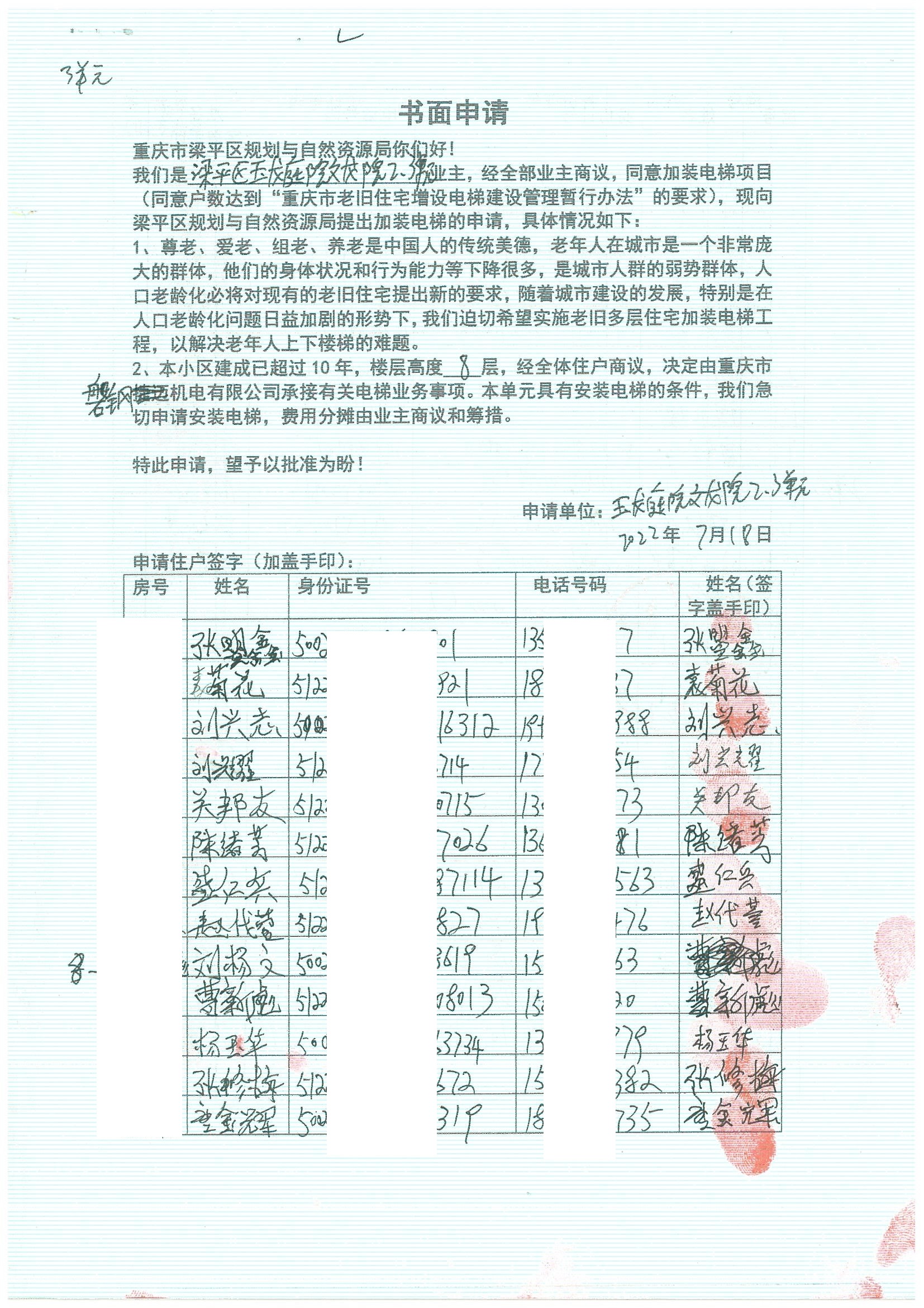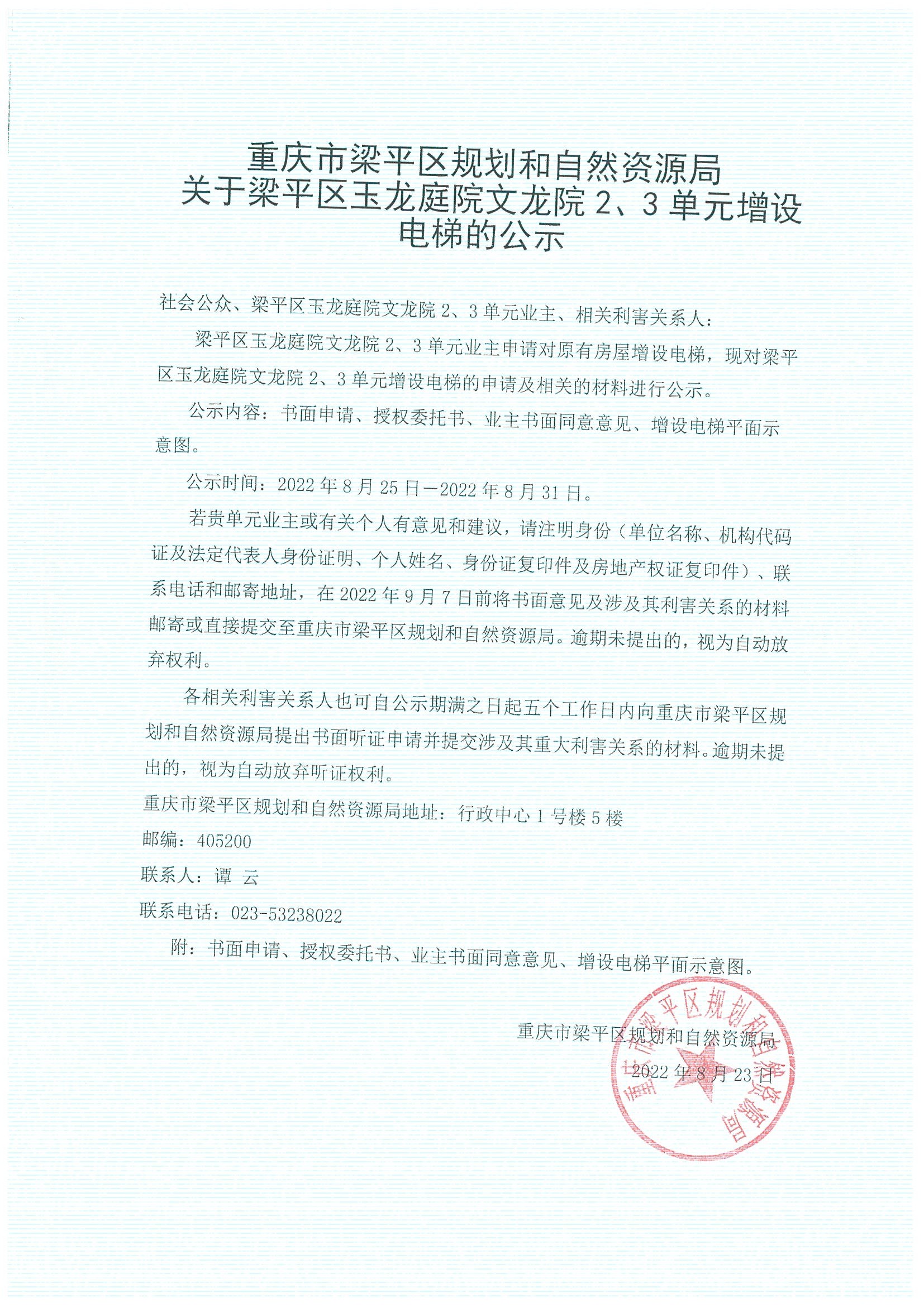 关于梁平区玉龙庭院文龙院2、3单元增设电梯的公示