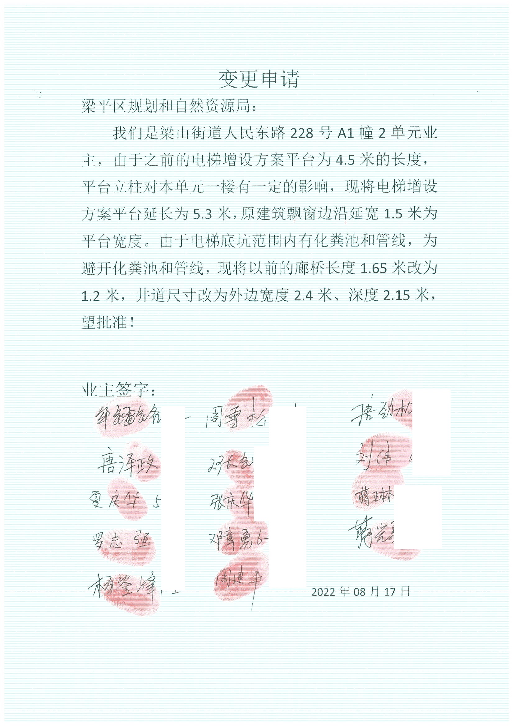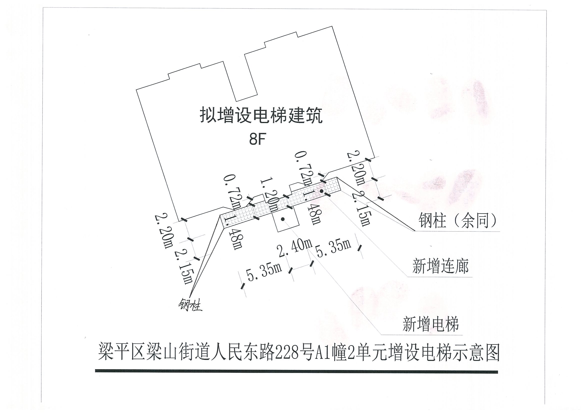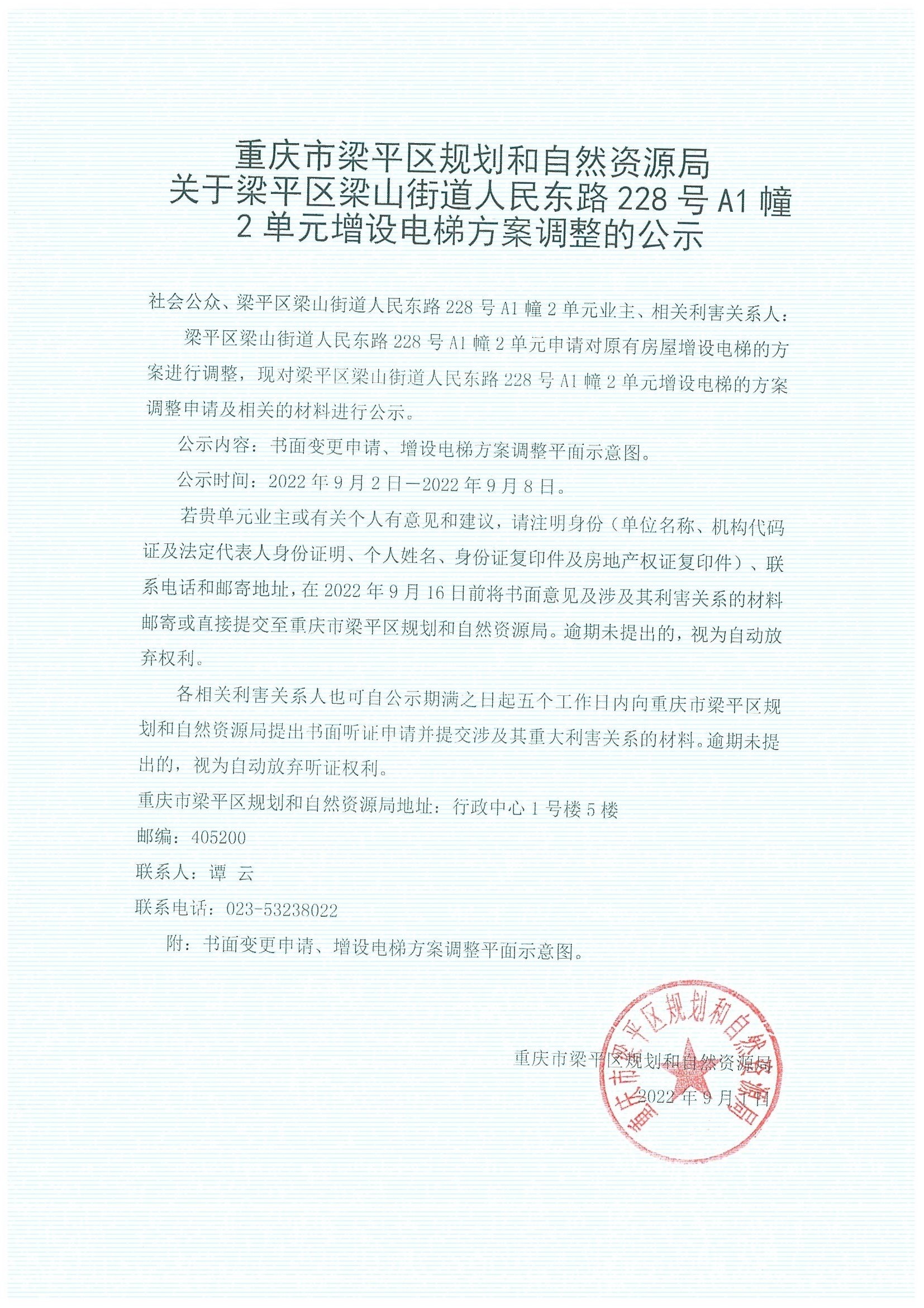 关于梁平区梁山街道人民东路228号A1幢2单元增设电梯方案调整的公示
