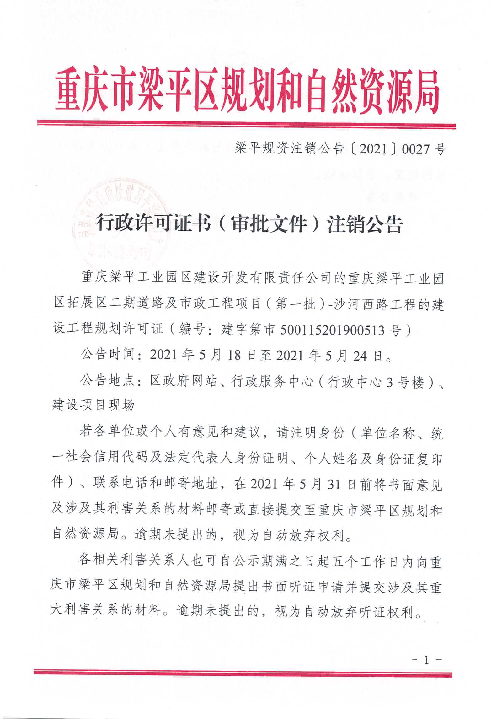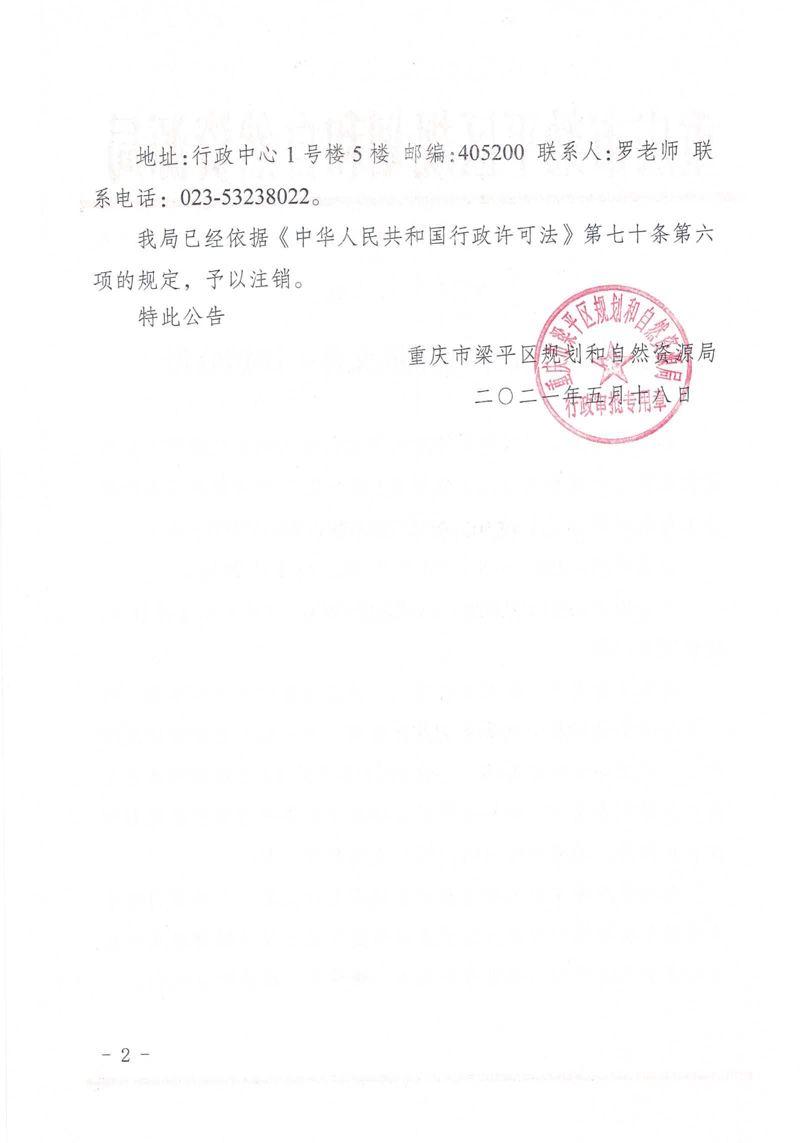 行政许可证书(审批文件)注销公告 梁规资注销公告〔2021〕0027号