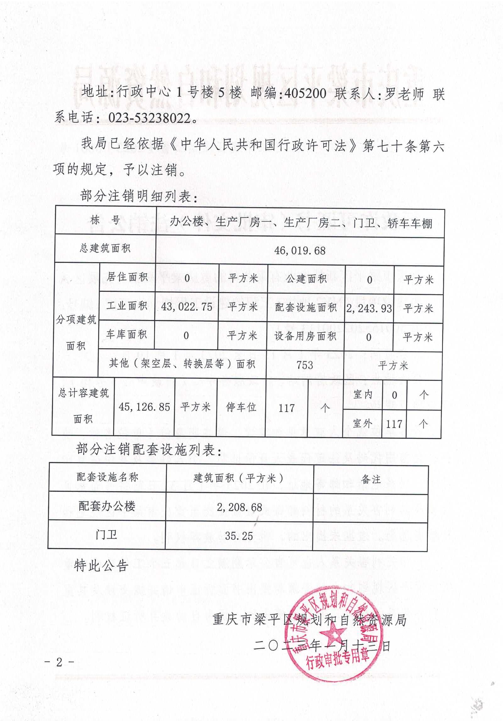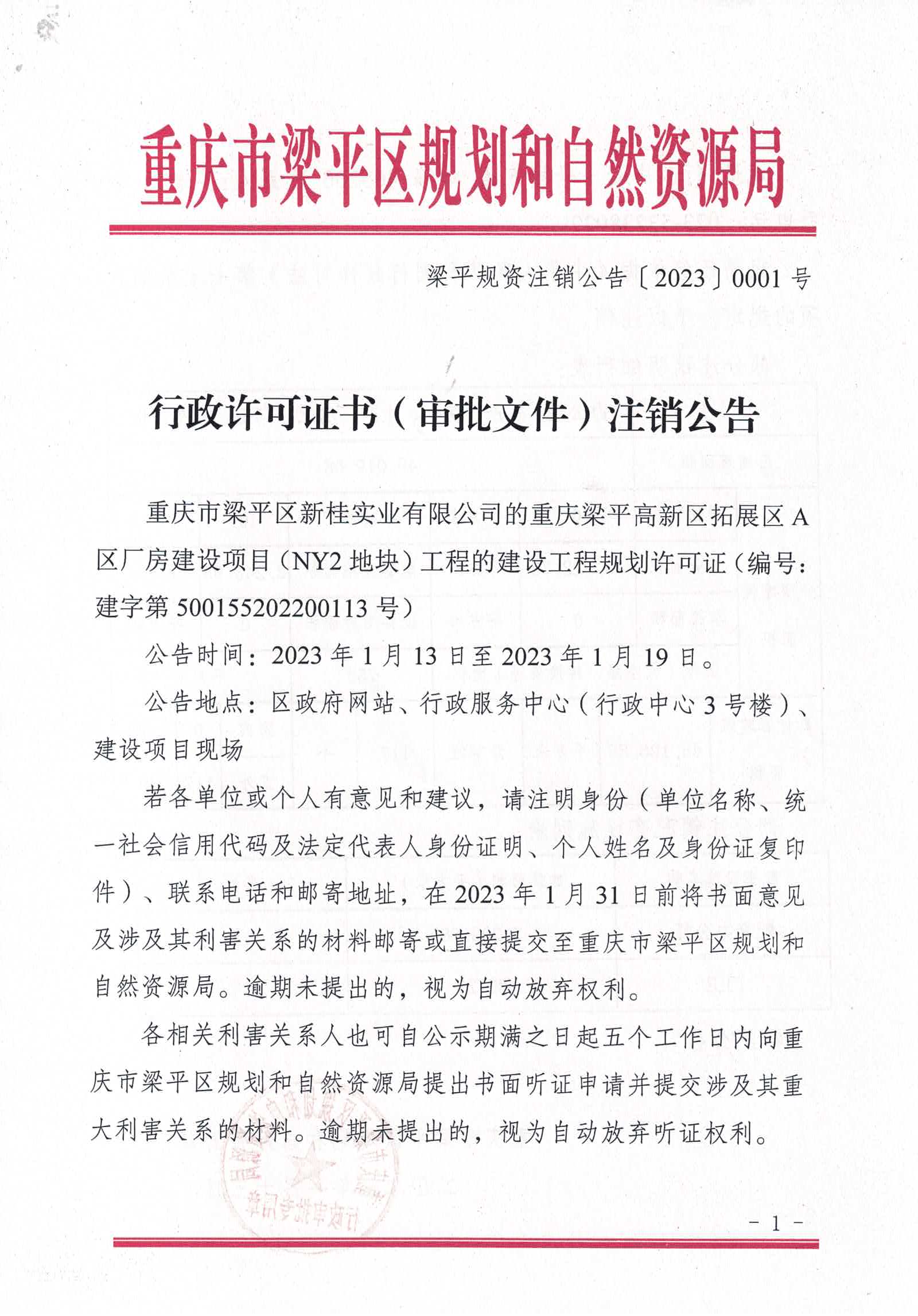 行政许可证书(审批文件)注销公告 梁平规资注销公告〔2023〕0001号