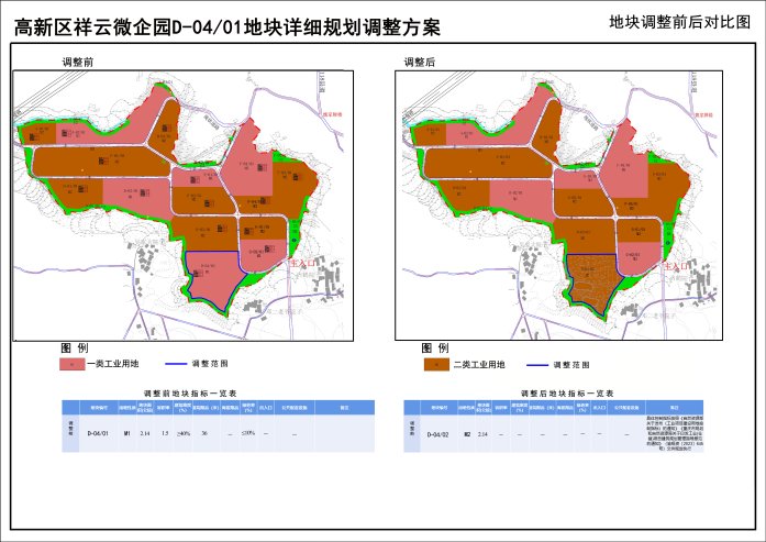D-04/01地块:用地性质由M1调整为M2,用地编号更新为D-04/02。