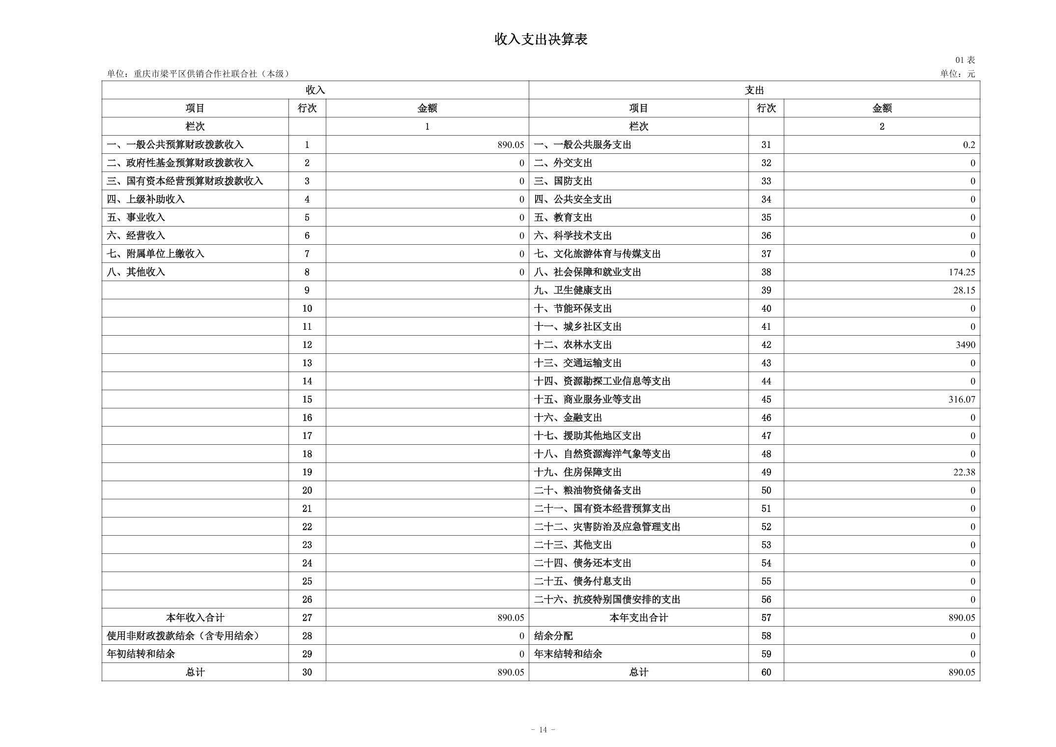 标题 | 重庆市梁平区供销合作社联合社2024年度决算公开说明 |