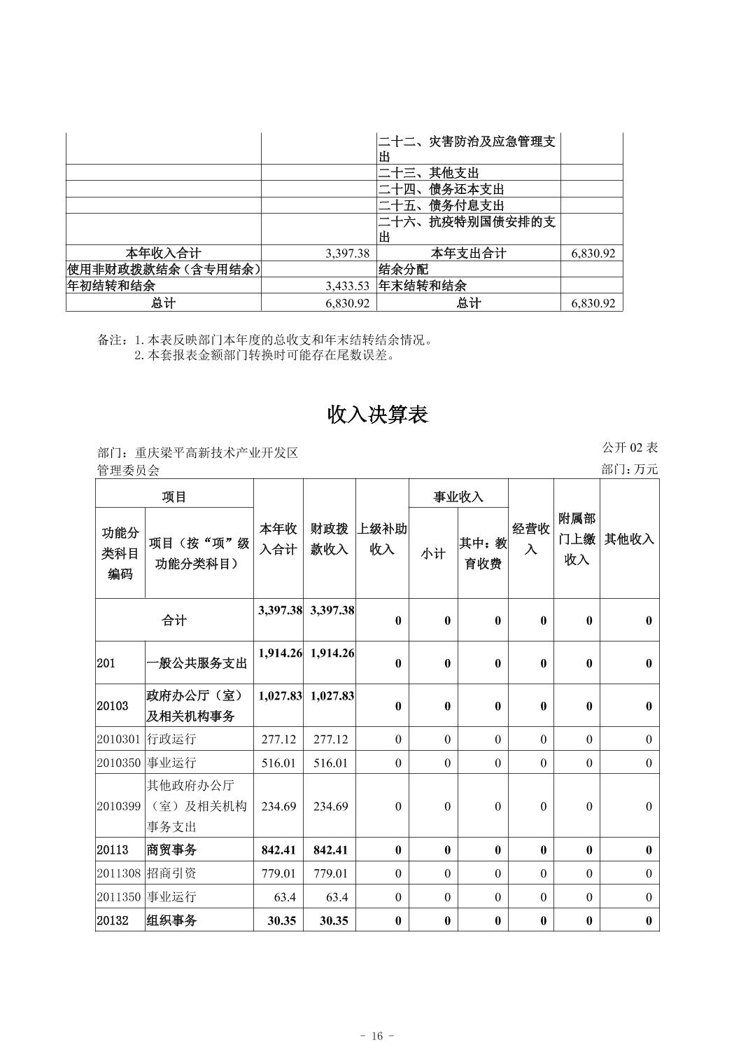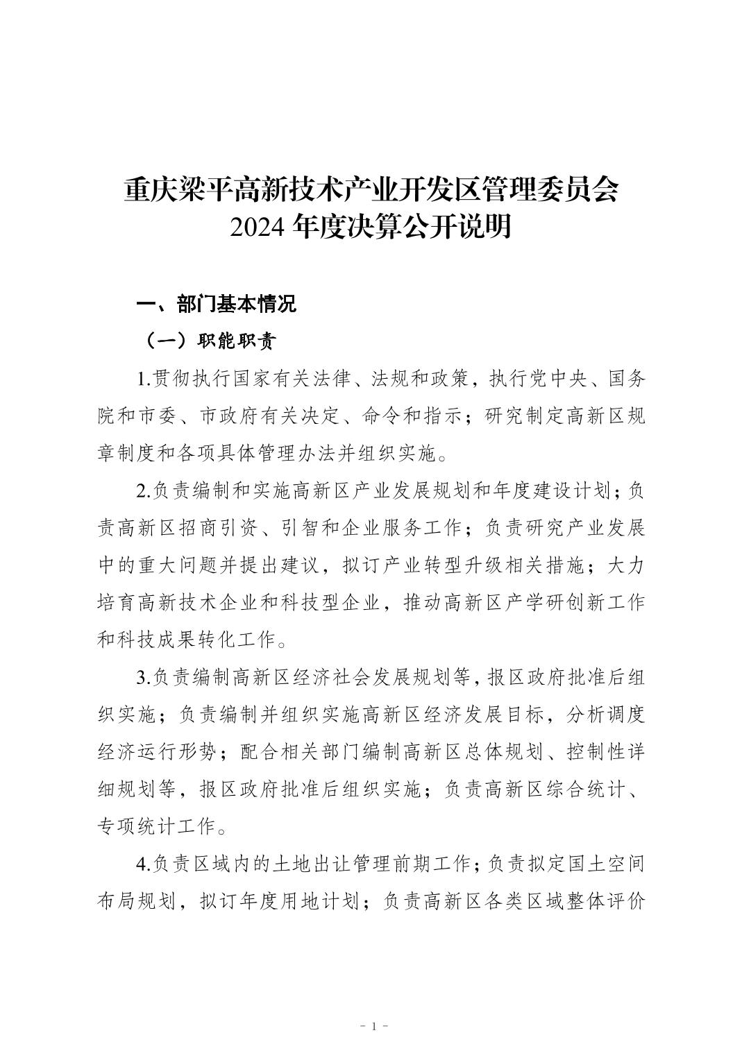 标题 | 重庆梁平高新技术产业开发区管理委员会 2024年度决算公开说明 | ||