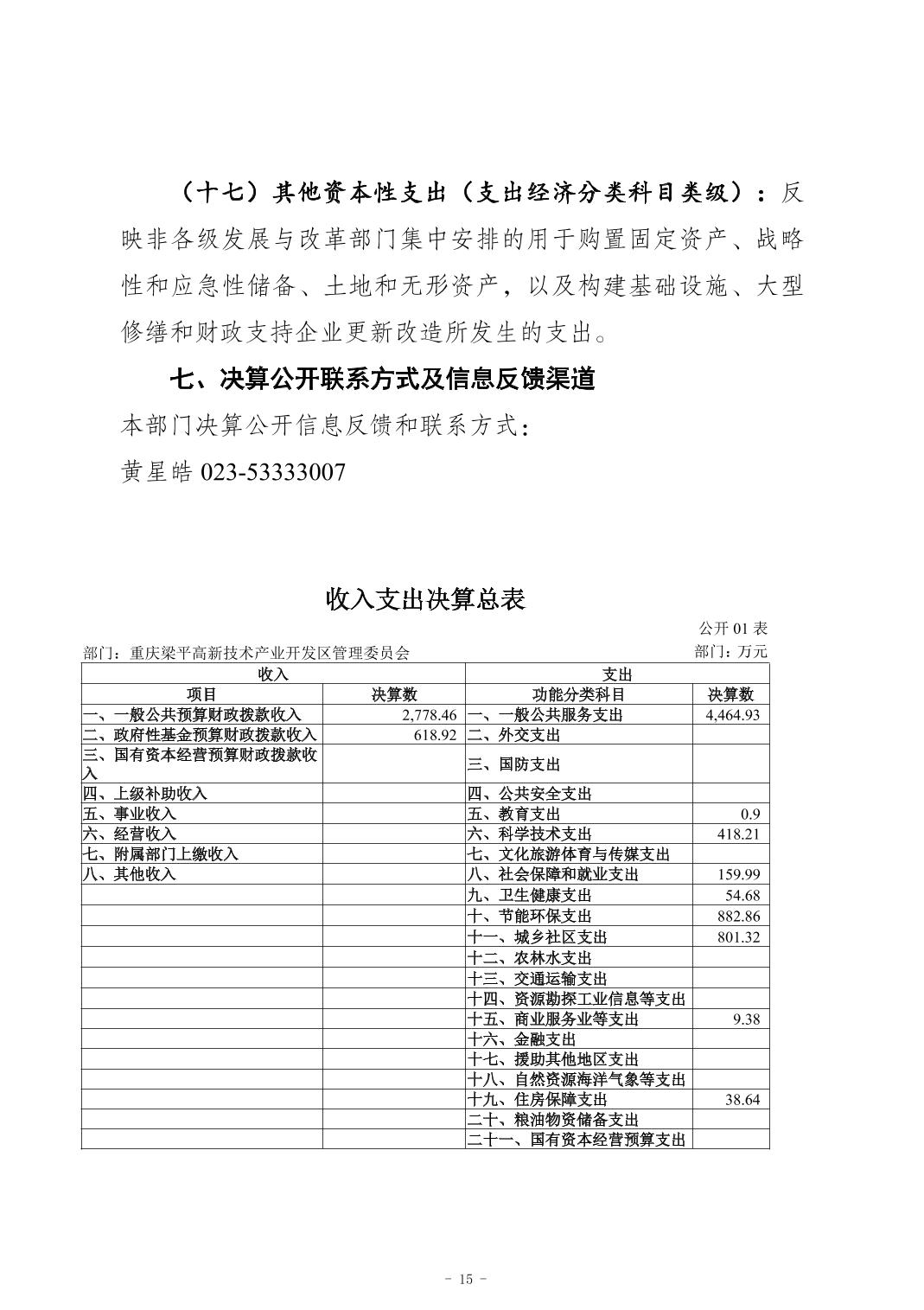 标题 | 重庆梁平高新技术产业开发区管理委员会 2024年度决算公开说明 |