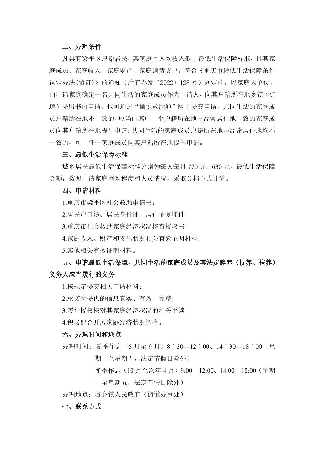 重庆市梁平区城乡居民最低生活保障申请办事指南