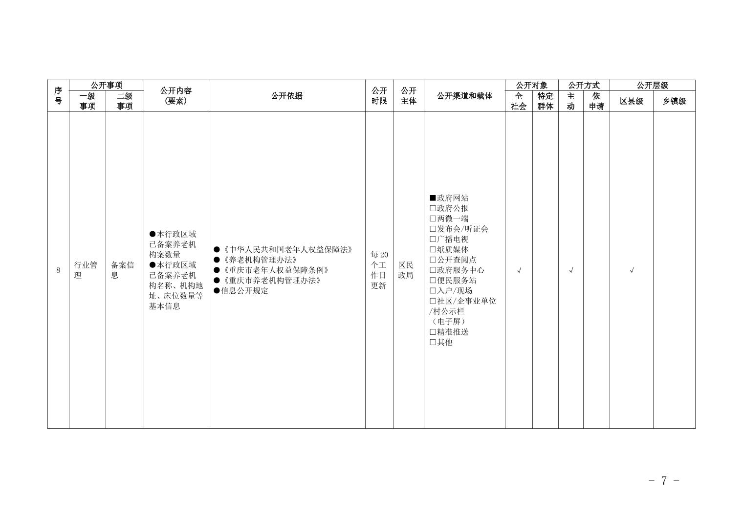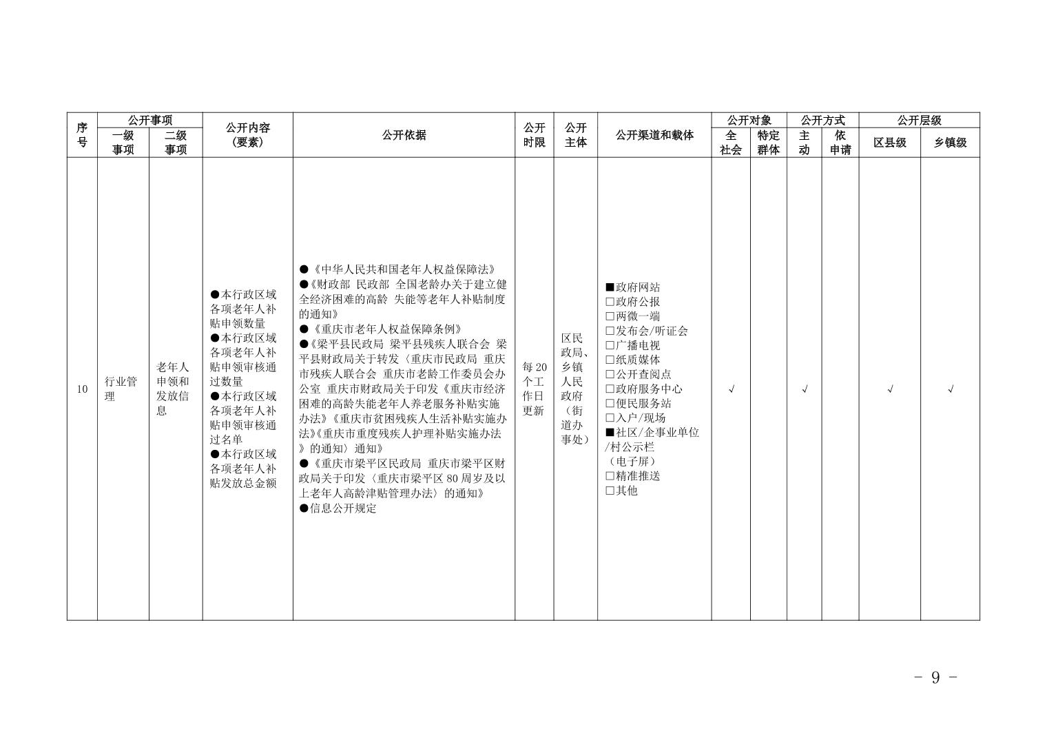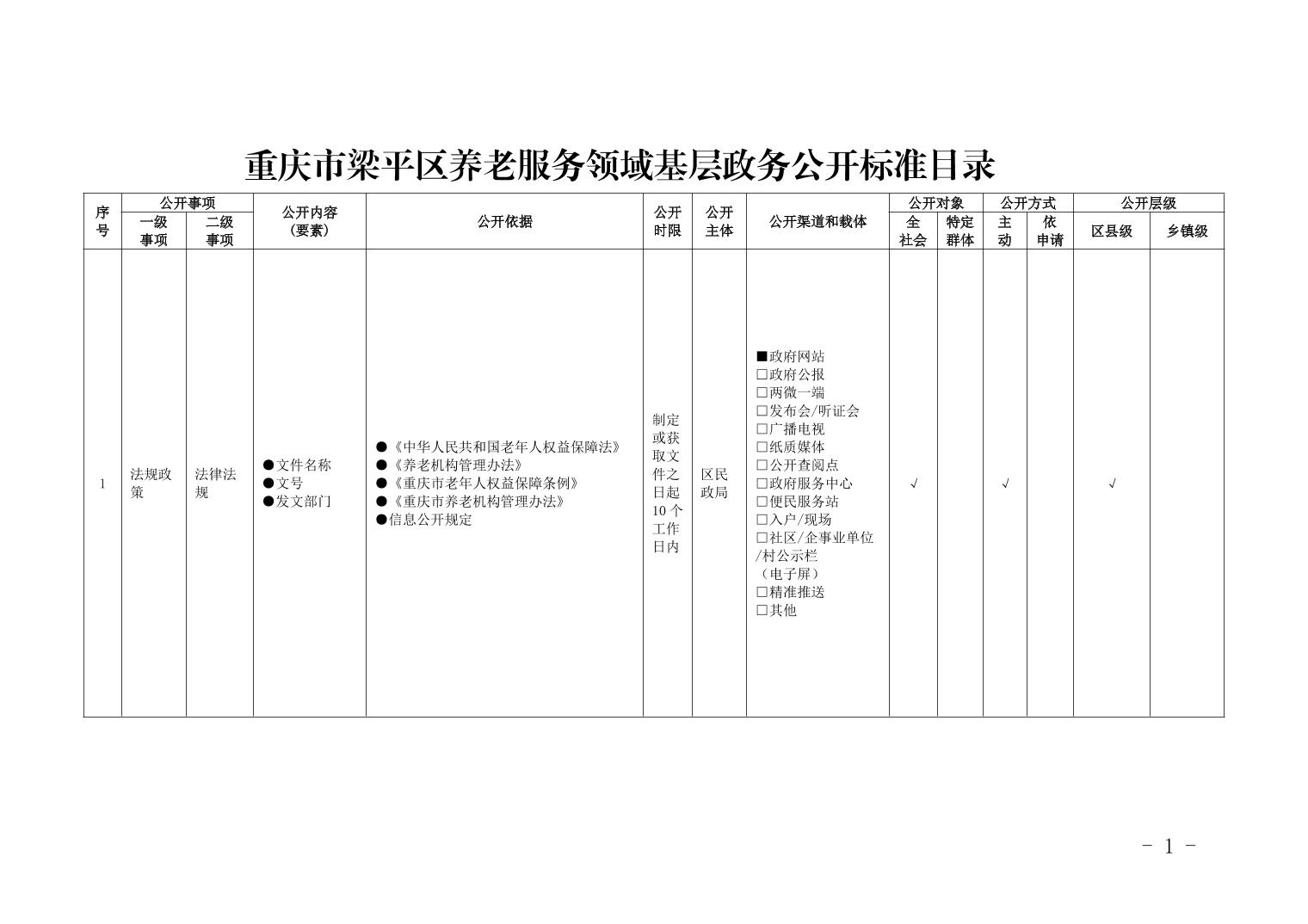 重庆市梁平区养老服务领域基层政务公开标准目录(2026年)