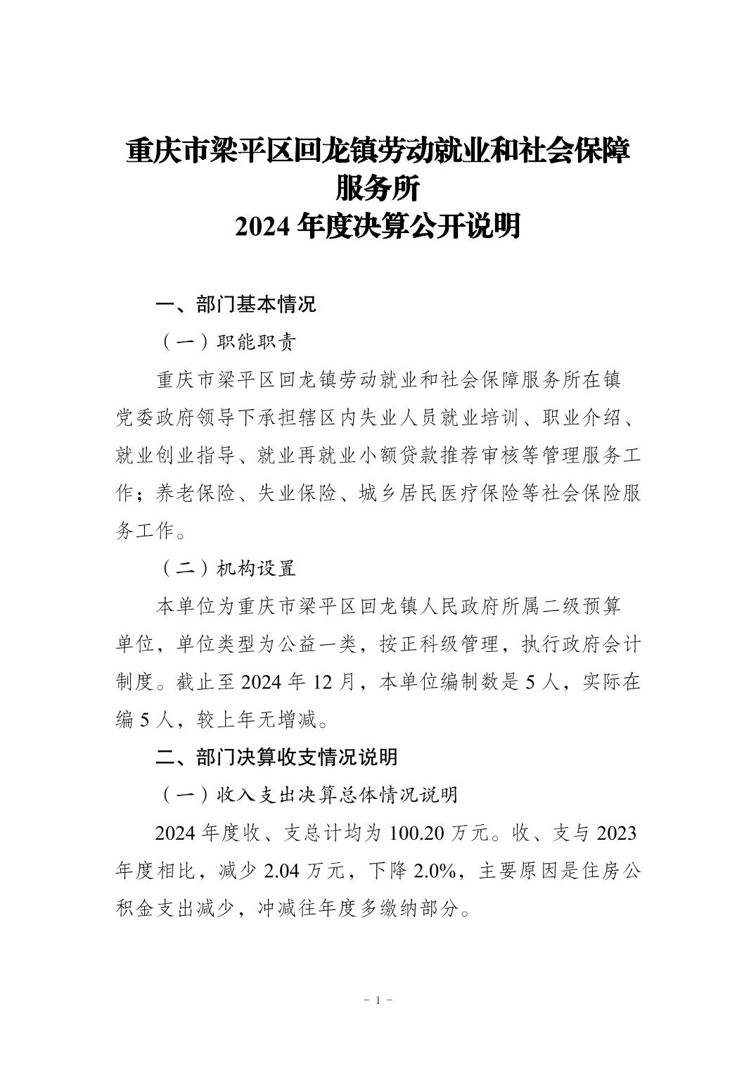 | 标题 | 重庆市梁平区回龙镇劳动就业和社会保障服务所2024年度决算公开说明 |