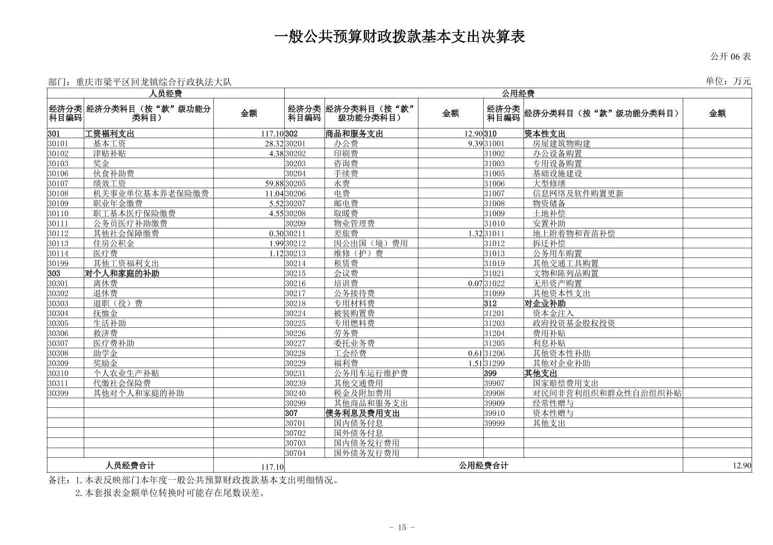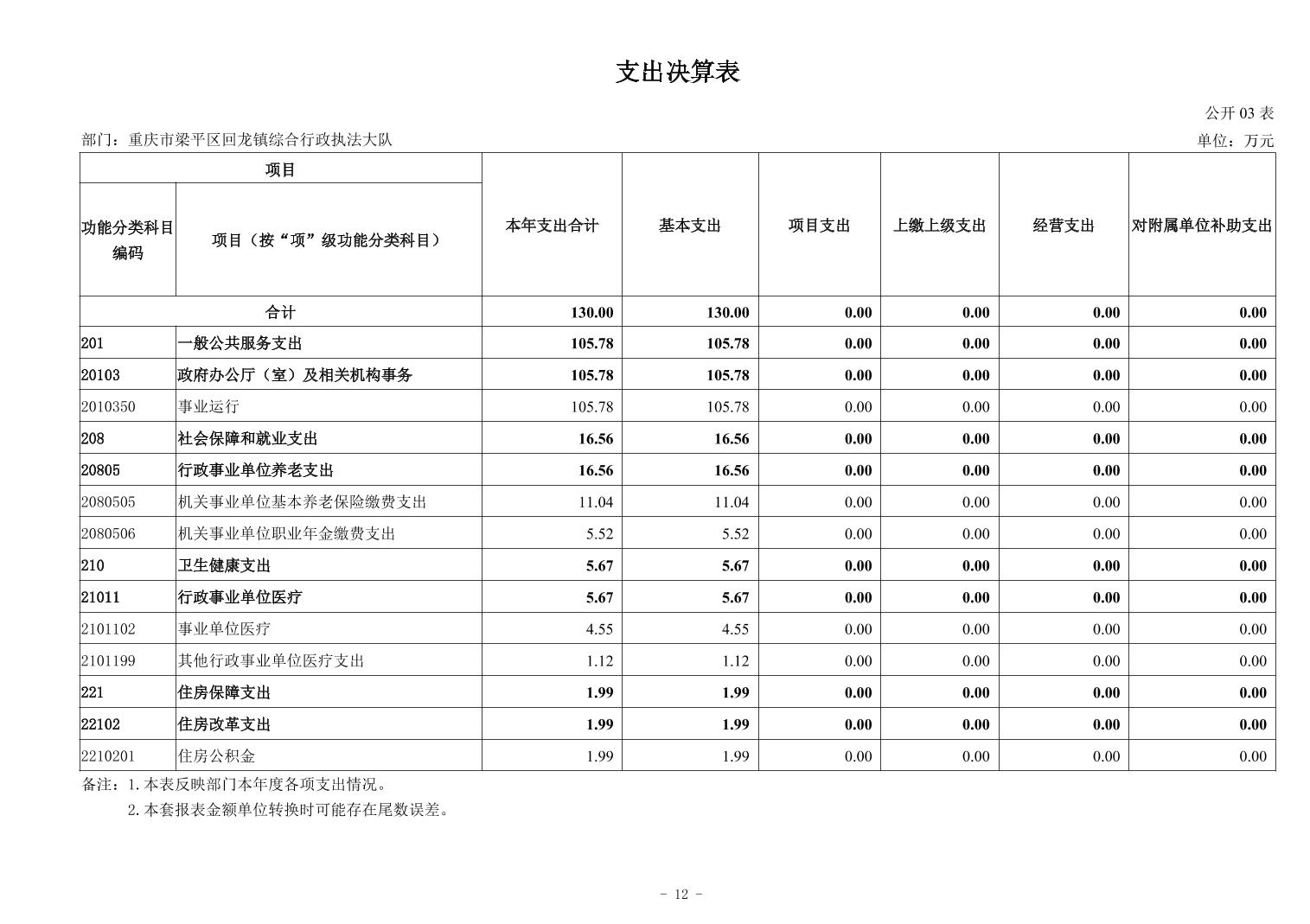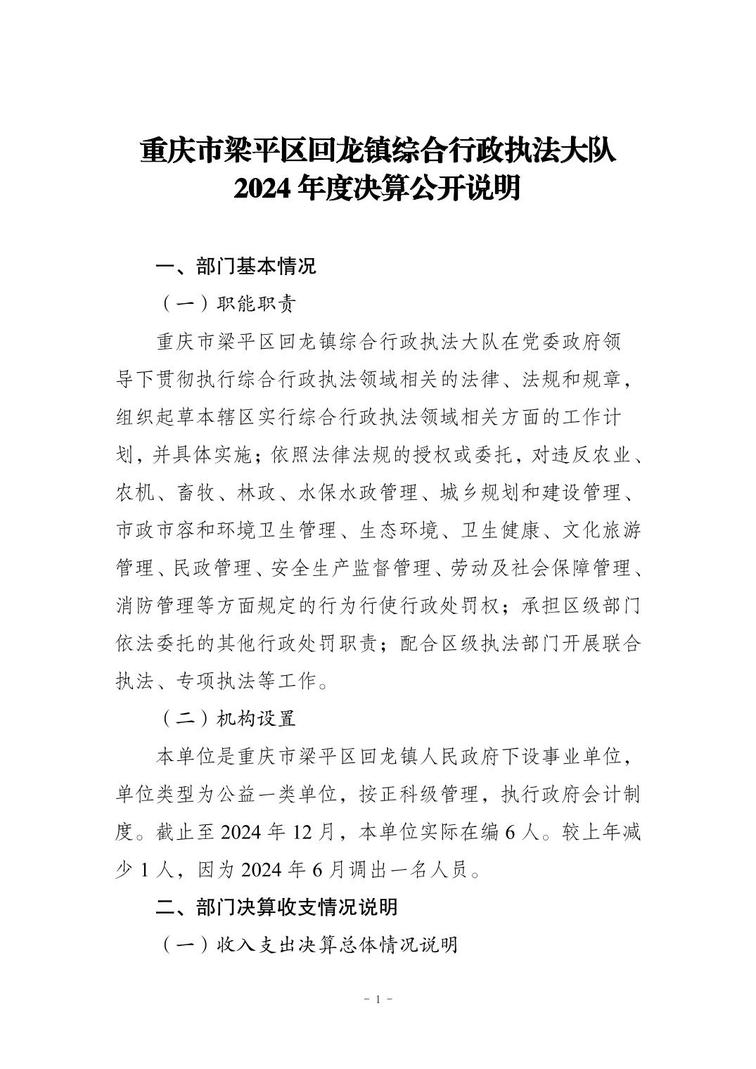 | 标题 | 重庆市梁平区回龙镇综合行政执法大队2024年度决算公开说明 |