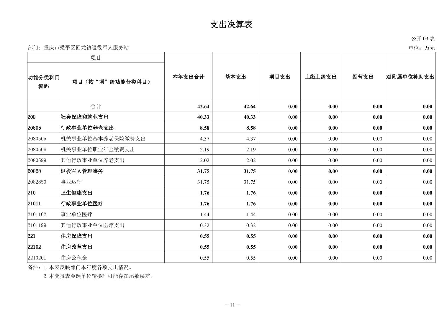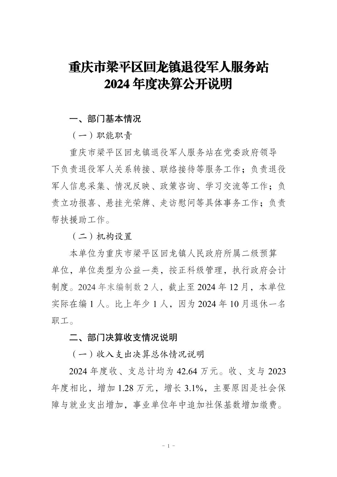 | 标题 | 重庆市梁平区回龙镇退役军人服务站2024年度决算公开情况说明 |
