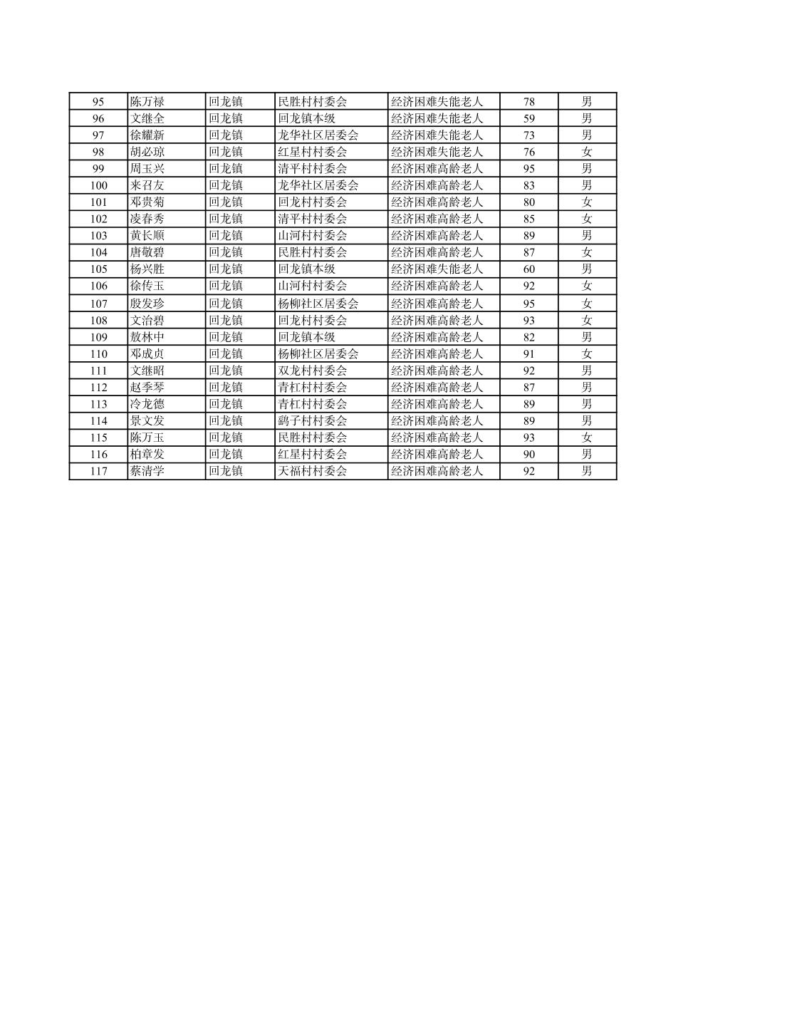 | 标题 | 回龙镇2026年经济困难失能老人名册 |