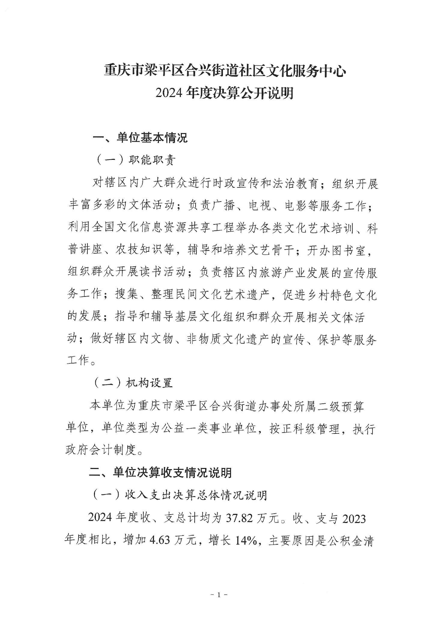 标题 | 重庆市梁平区合兴街道社区文化服务中心 2024年度决算公开说明 | ||