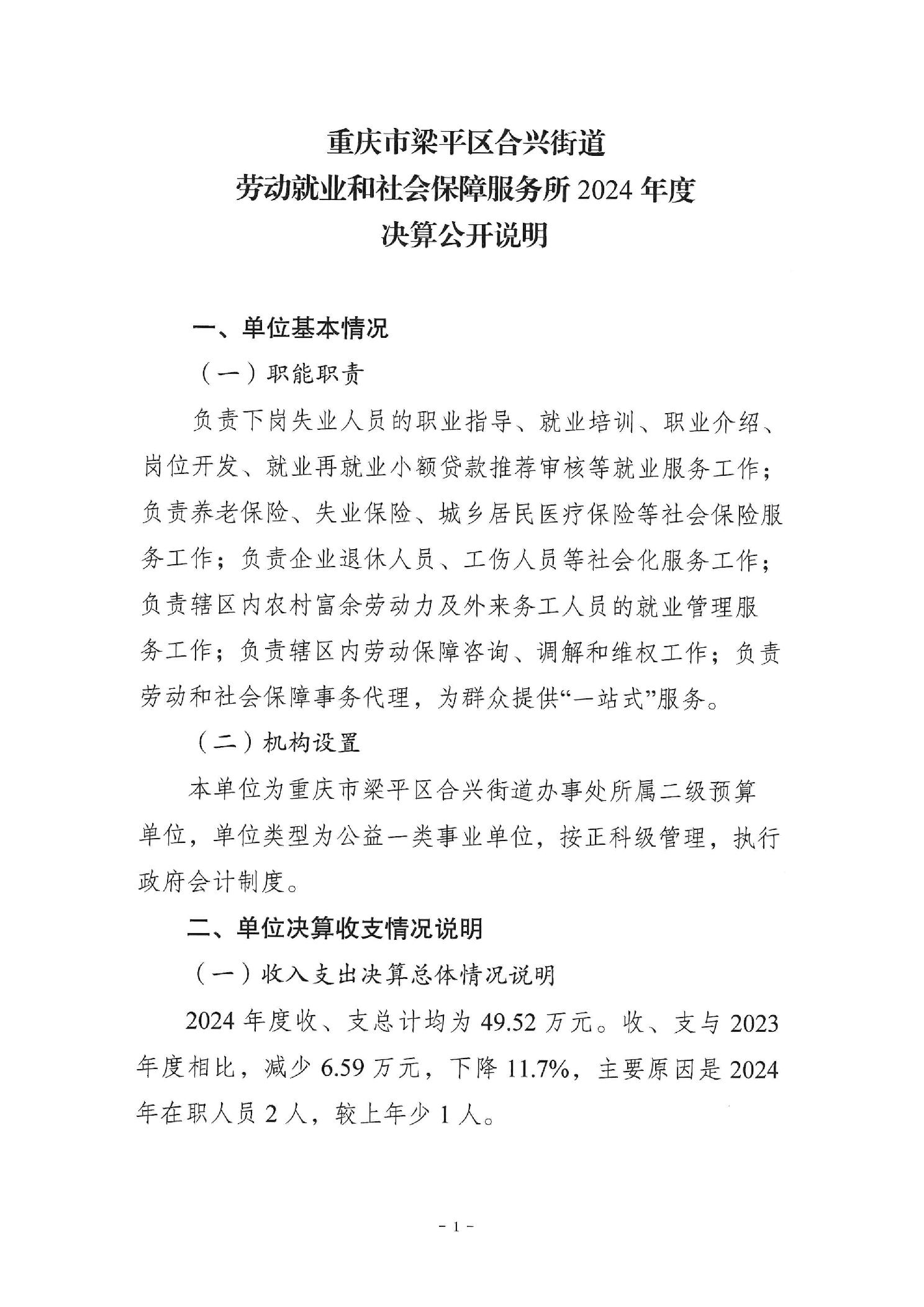 标题 | 重庆市梁平区合兴街道劳动就业和社会保障服务所2024年度 决算公开说明 | ||