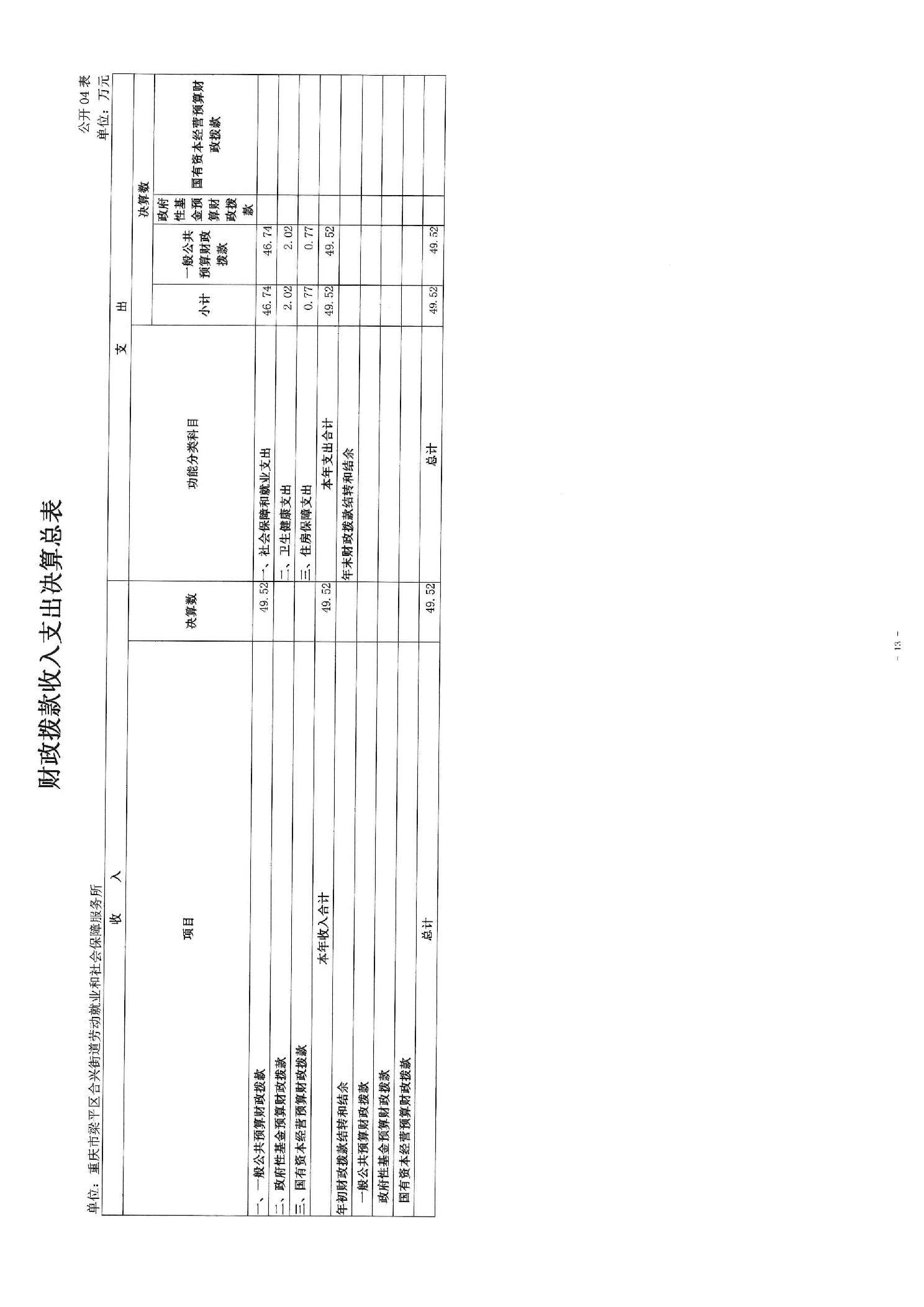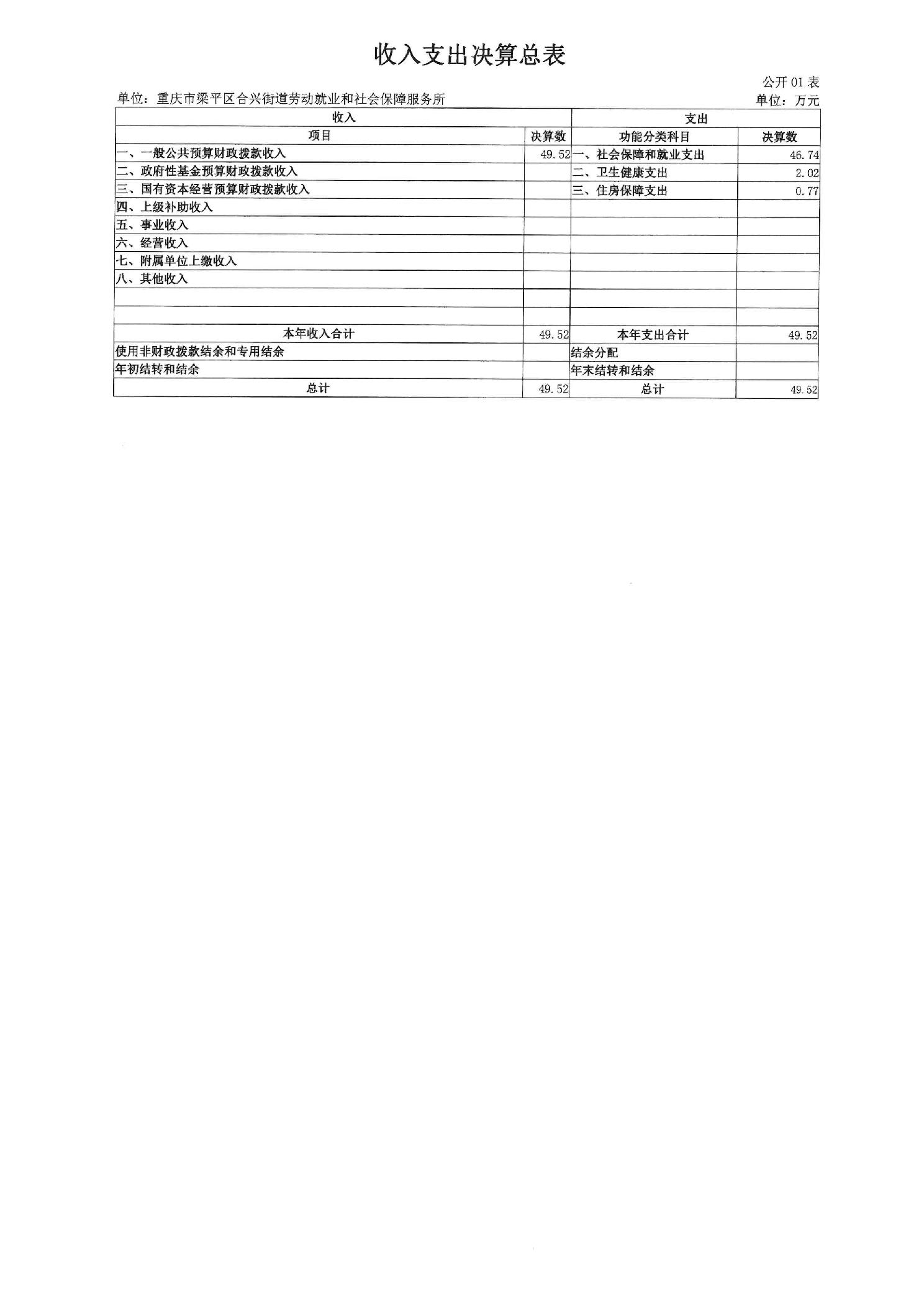 标题 | 重庆市梁平区合兴街道劳动就业和社会保障服务所2024年度 决算公开说明 |