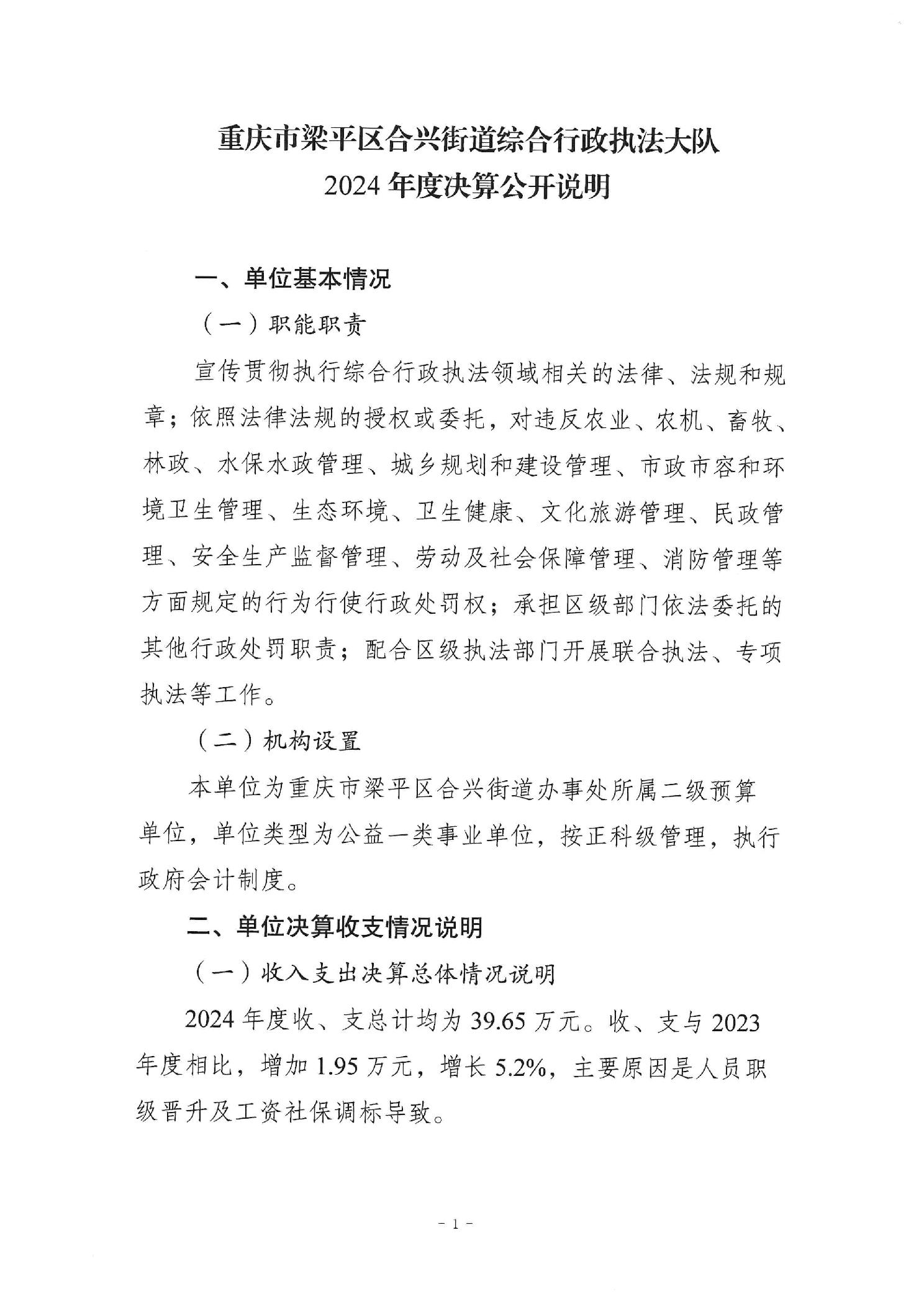 标题 | 重庆市梁平区合兴街道综合行政执法大队 2024年度决算公开说明 |
