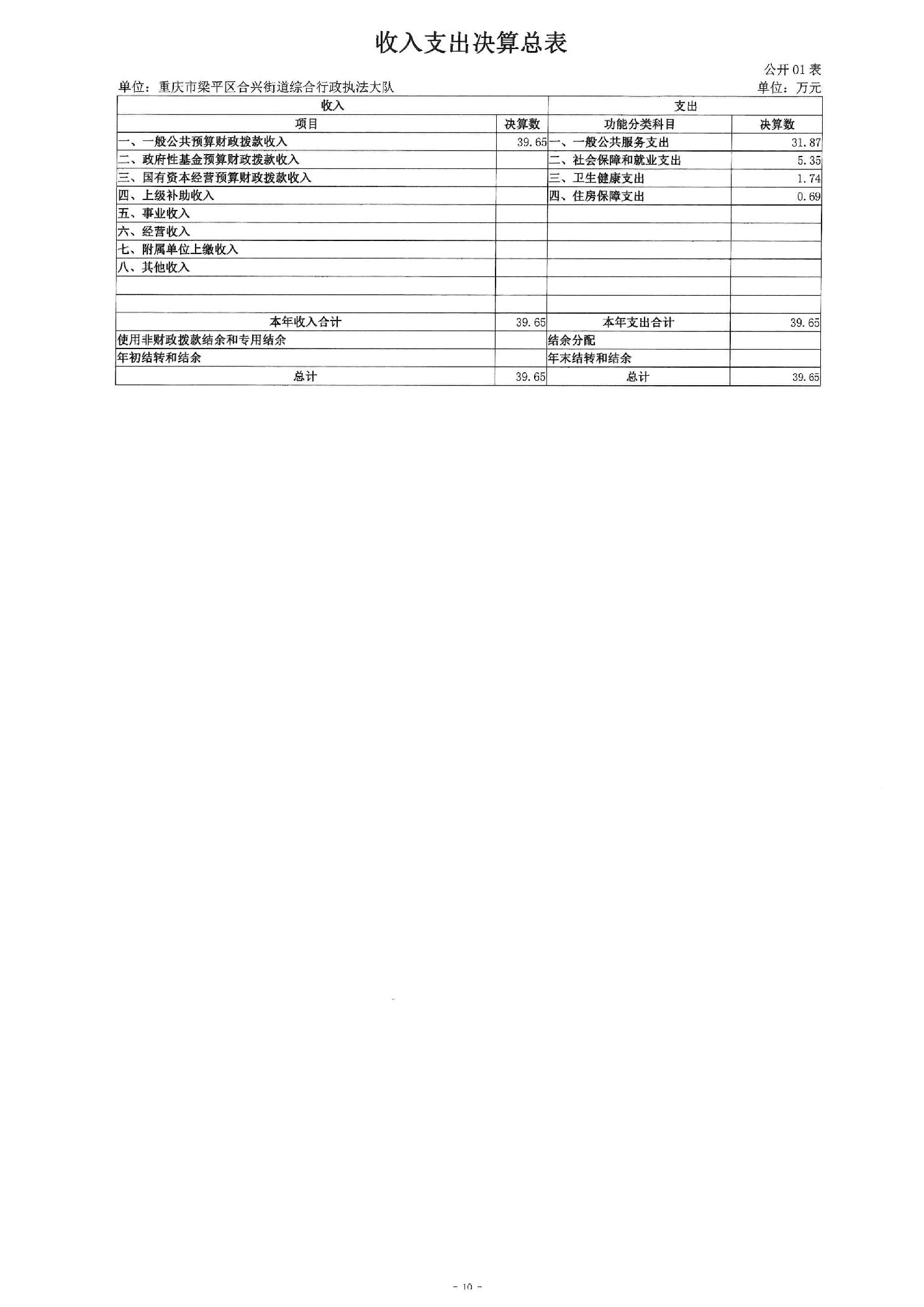 标题 | 重庆市梁平区合兴街道综合行政执法大队 2024年度决算公开说明 | ||