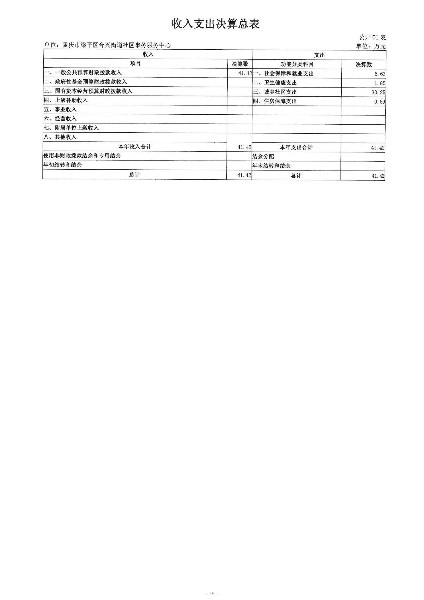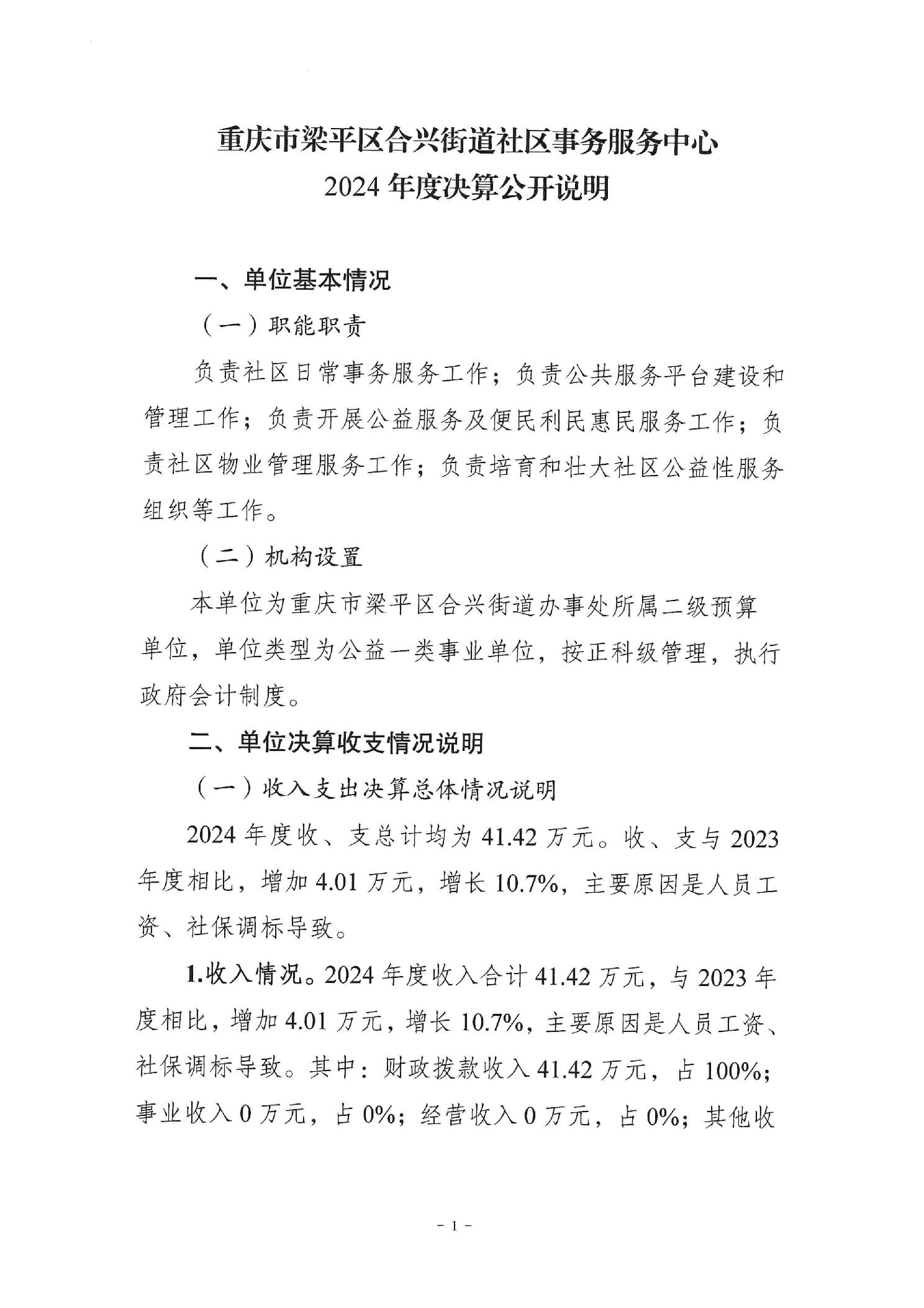 标题 | 重庆市梁平区合兴街道社区事务服务中心 2024年度决算公开说明 | ||