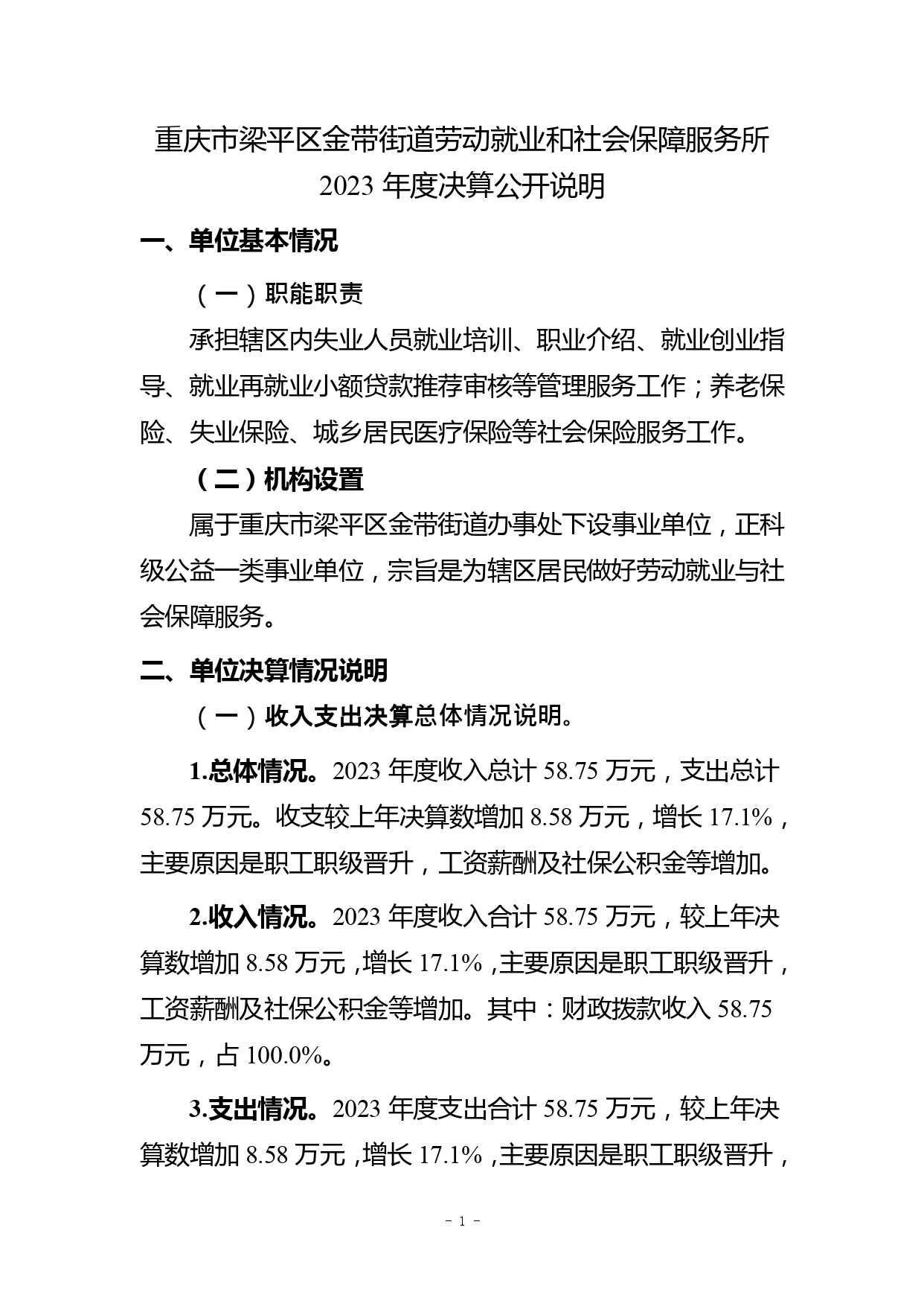 | 标题 | 重庆市梁平区金带街道劳动就业和社会保障服务所2023年度决算公开说明 |