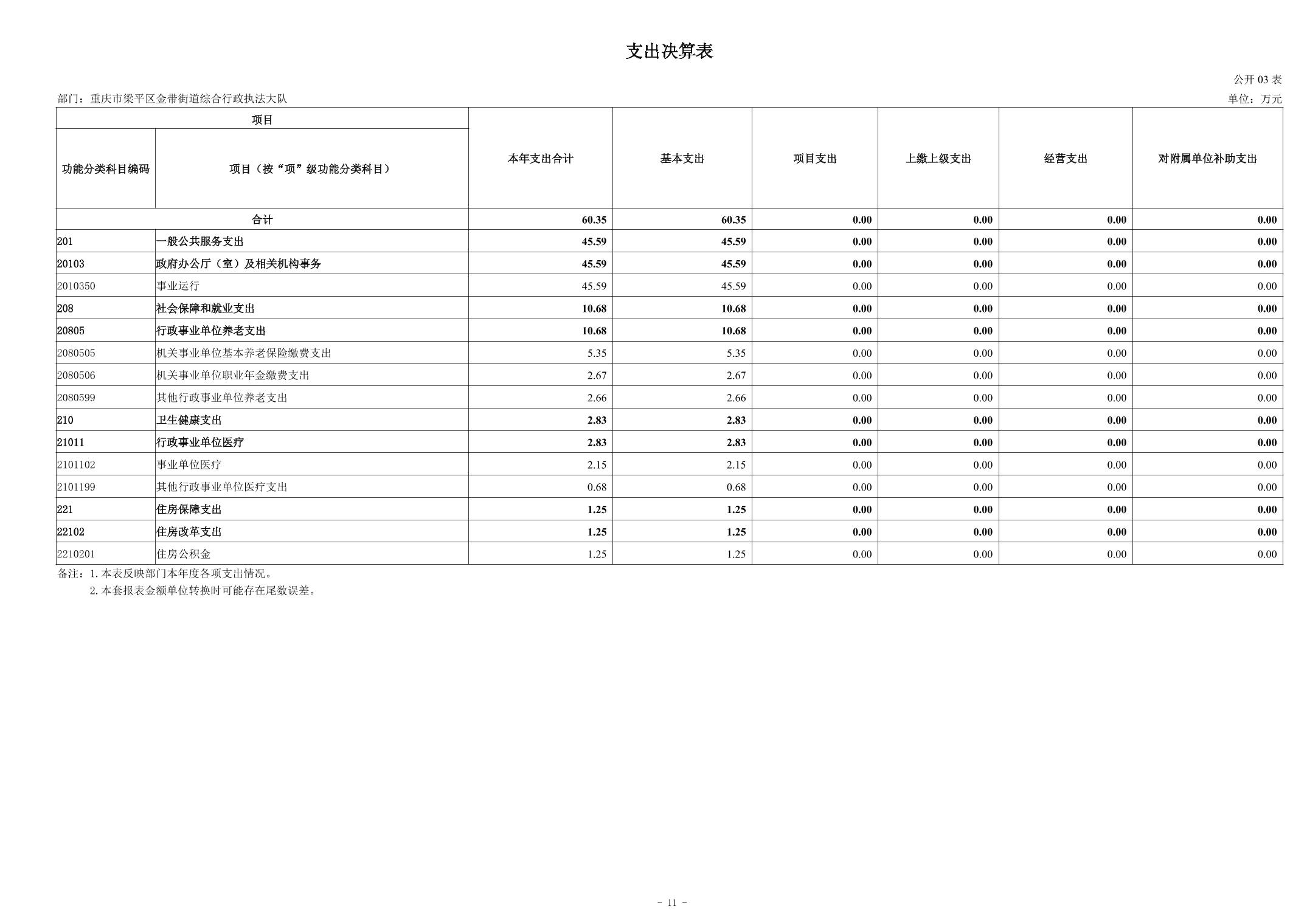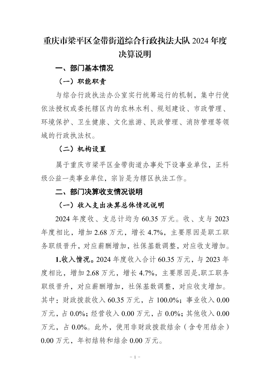 标题 | 重庆市梁平区金带街道综合行政执法大队2024年度决算说明 | ||