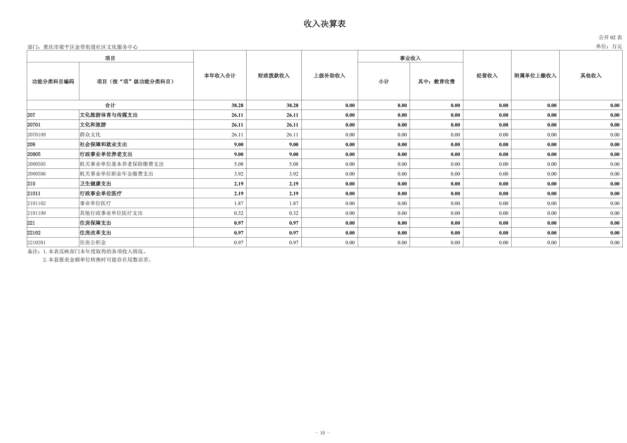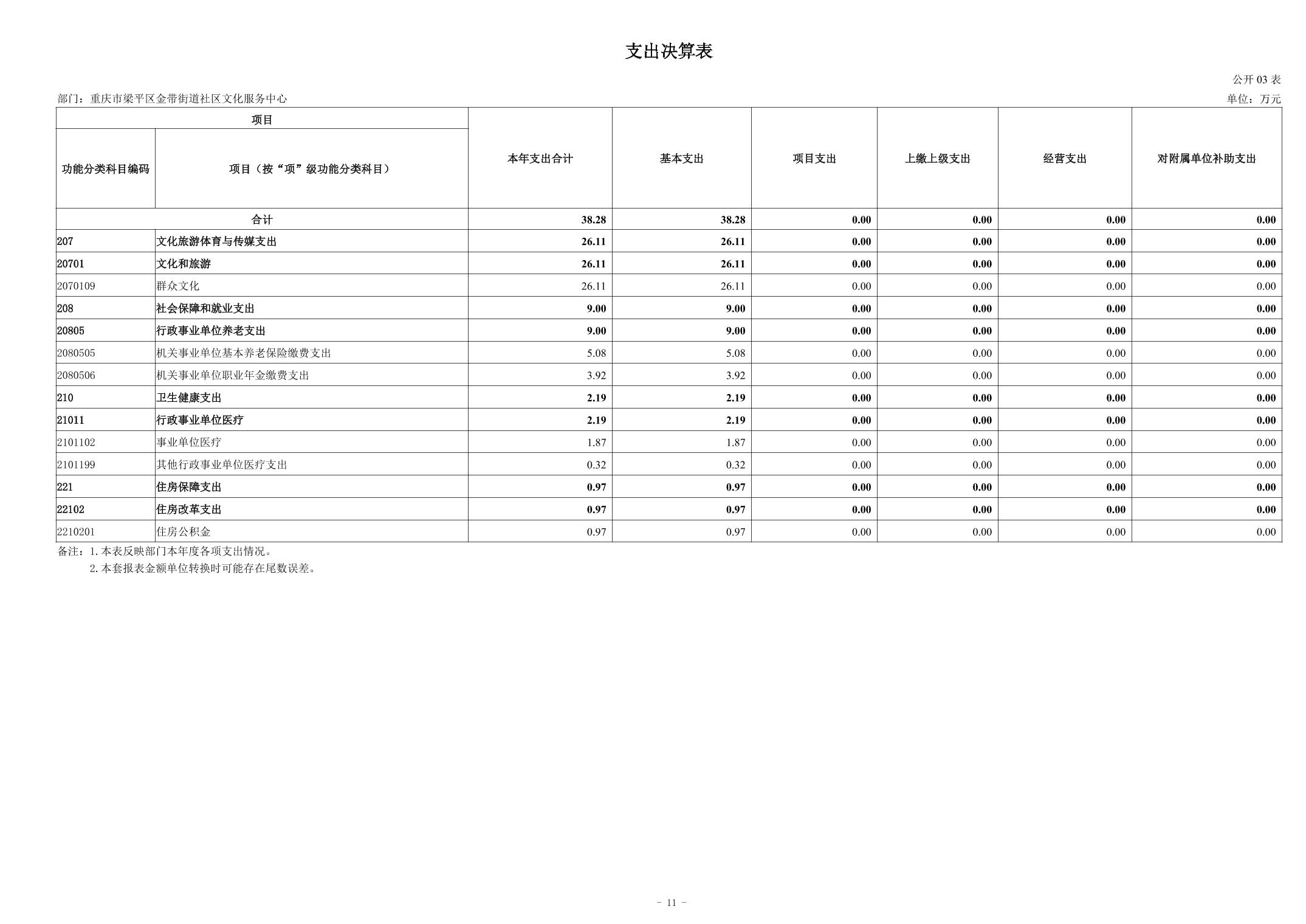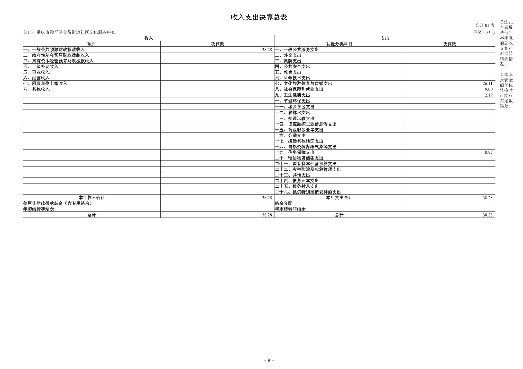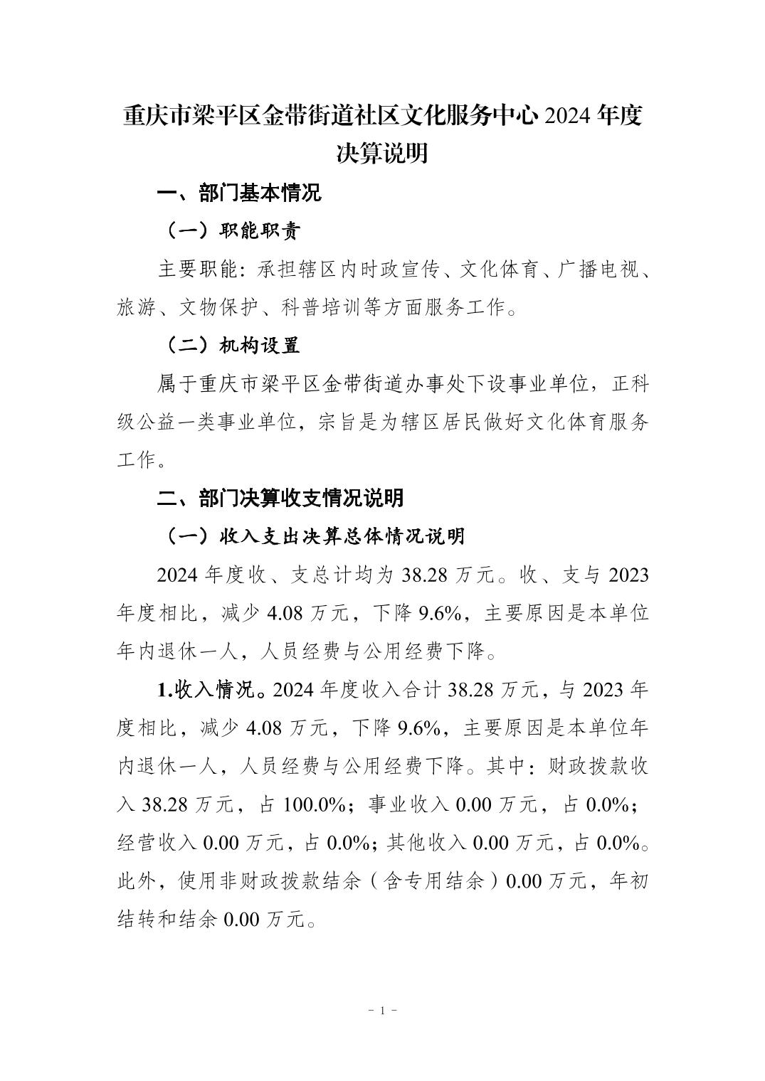 标题 | 重庆市梁平区金带街道社区文化服务中心2024年度决算说明 |