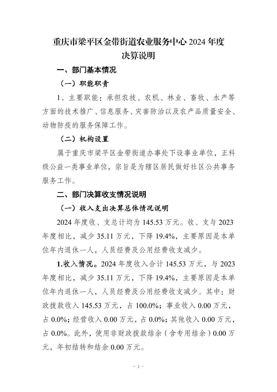 标题 | 重庆市梁平区金带街道农业服务中心2024年度决算说明 | ||