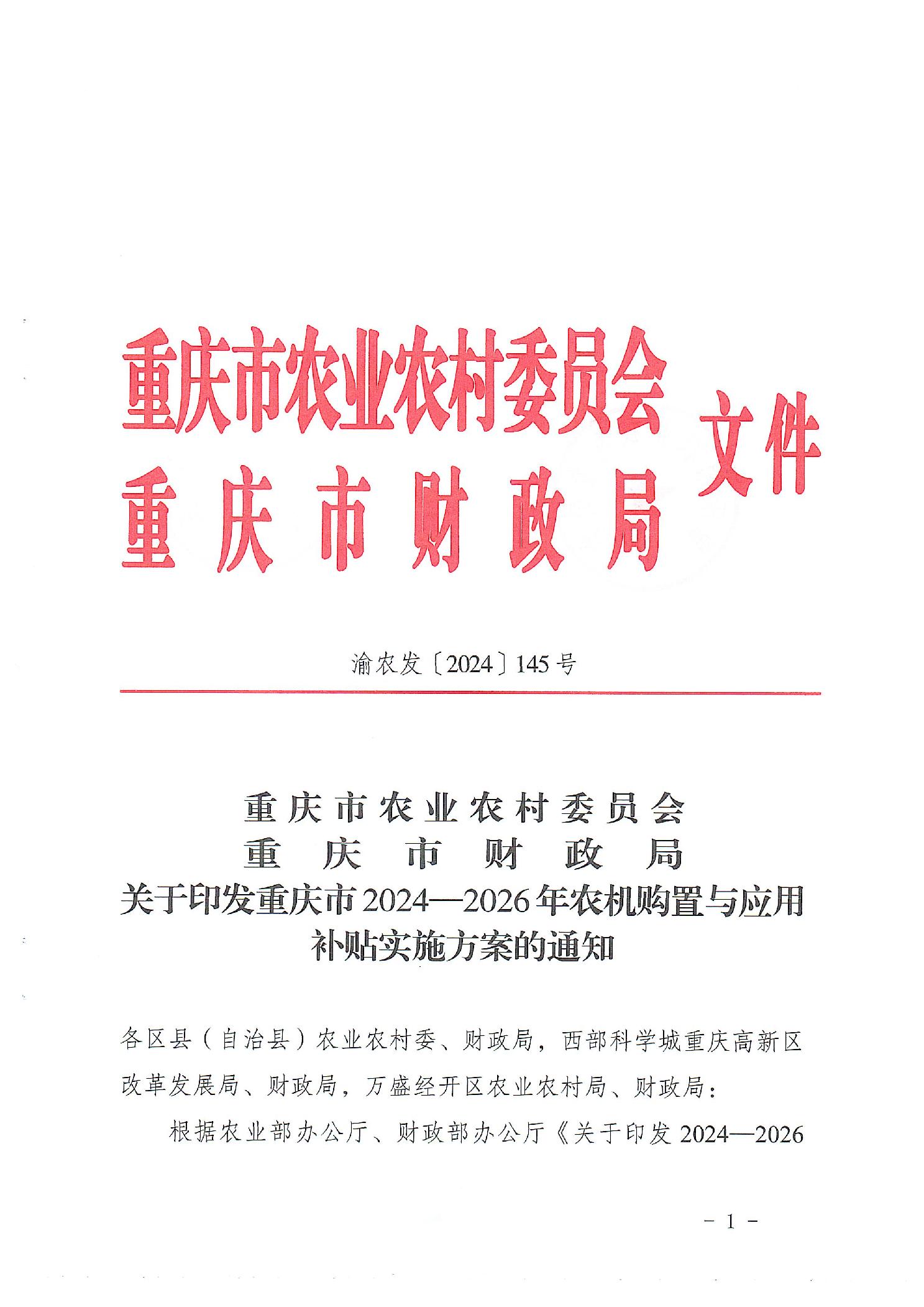 | 标题 | 重庆市2024-2026年农机购置与应用补贴实施方案 |