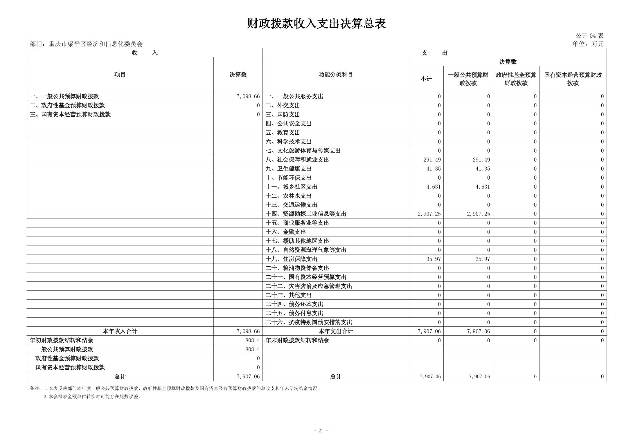 标题 | 重庆市梁平区经济和信息化委员会 2024年度决算公开说明 | ||