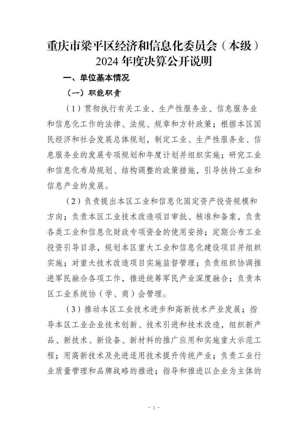 标题 | 重庆市梁平区经济和信息化委员会(本级) 2024年度决算公开说明 | ||