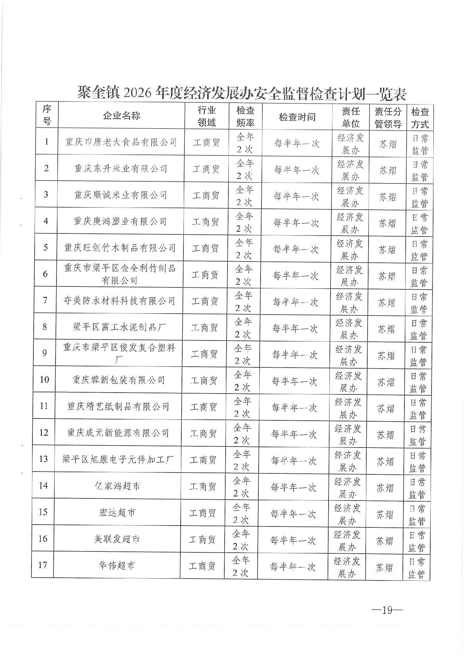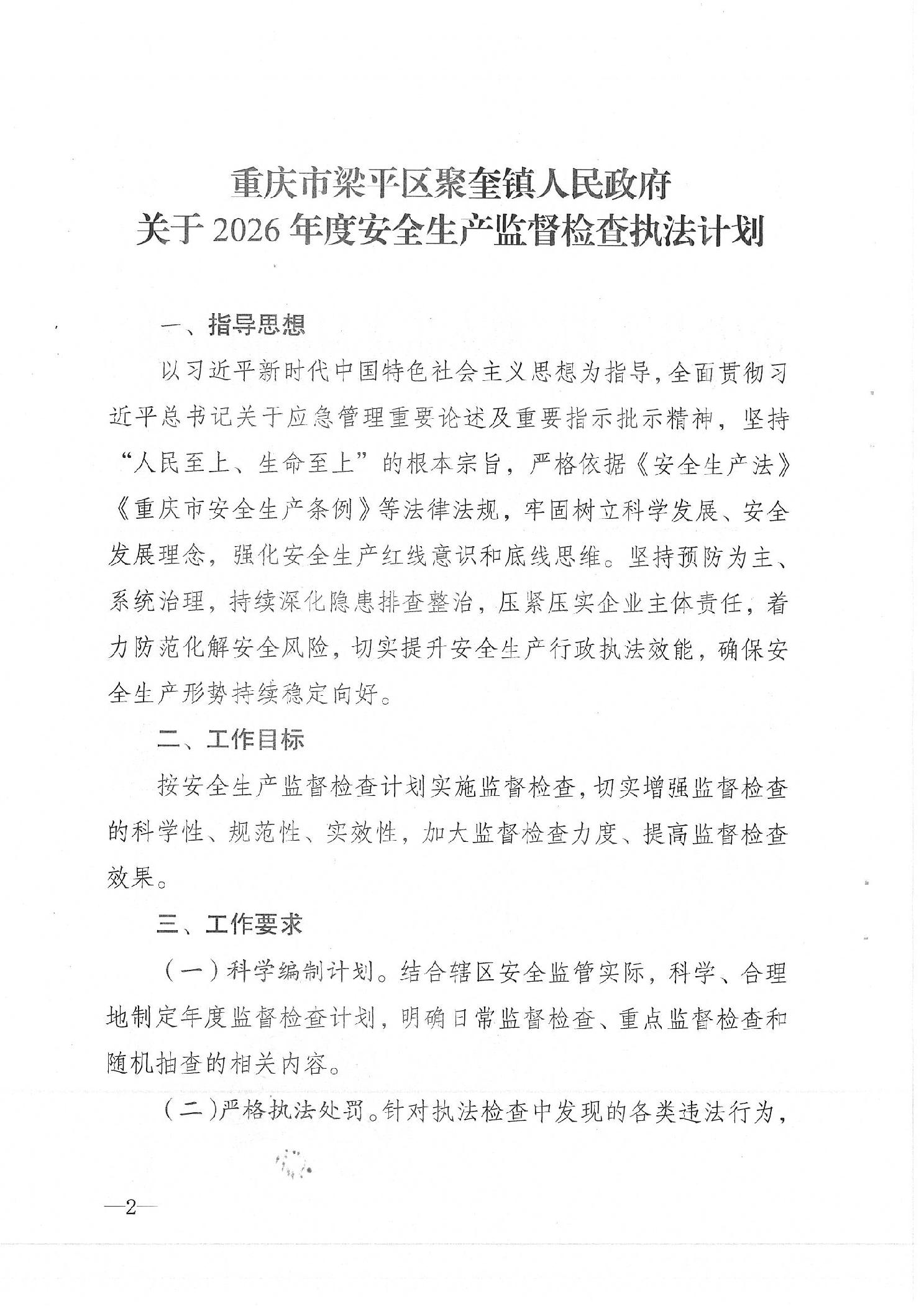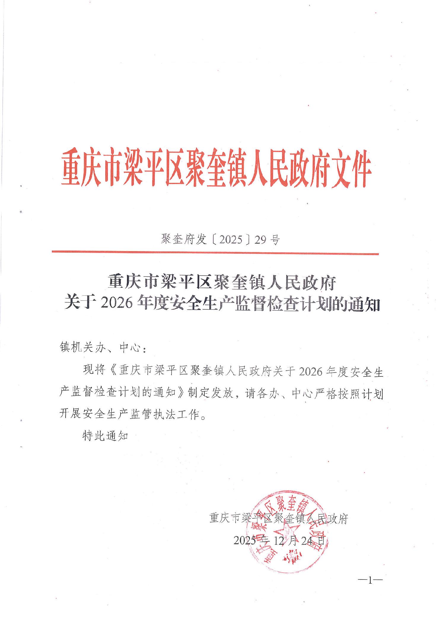 | 标题 | 重庆市梁平区聚奎镇人民政府 关于2026年度安全生产监督检查计划的通知 |