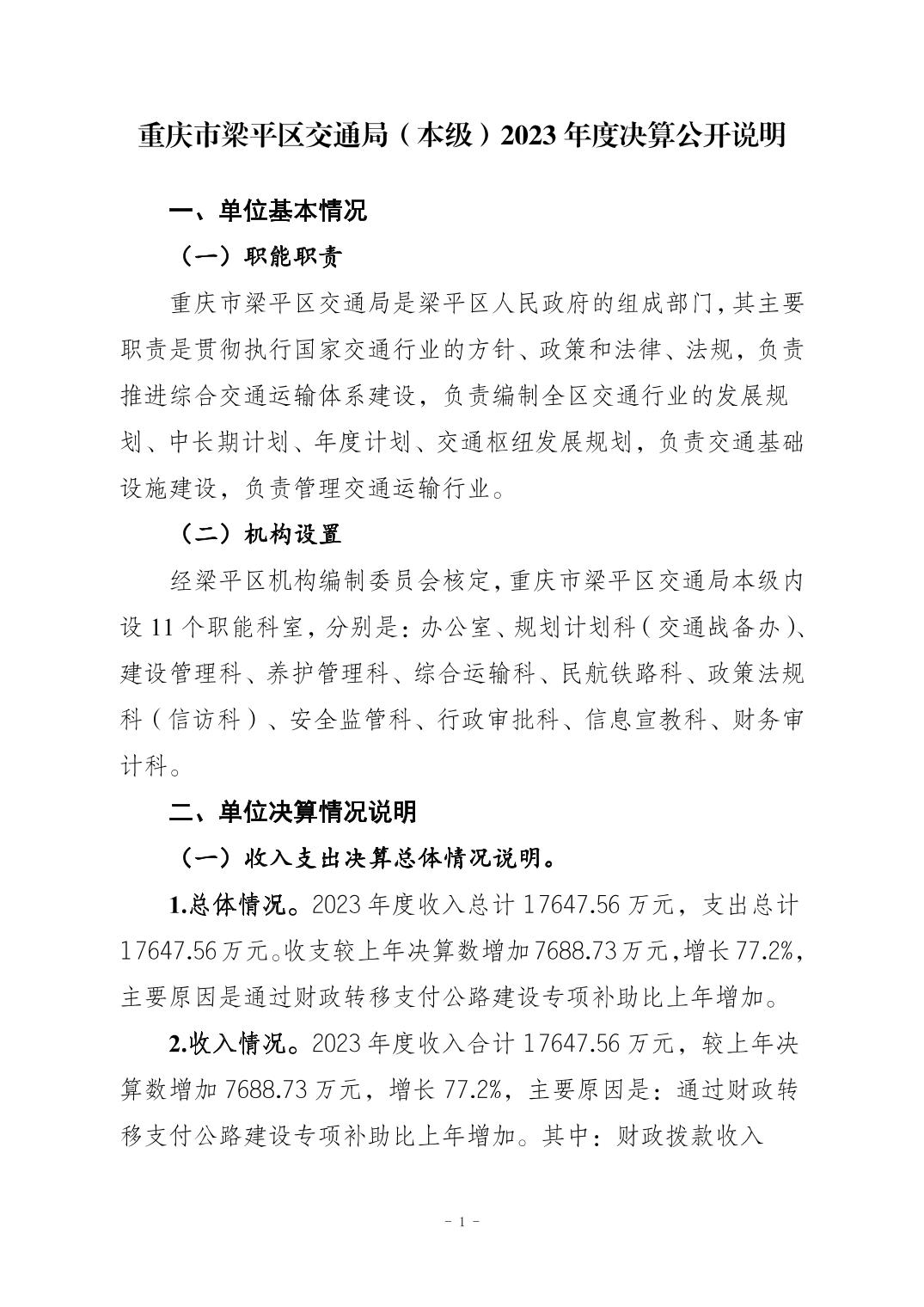 | 标题 | 重庆市梁平区交通局(本级)2023年度决算公开说明 |