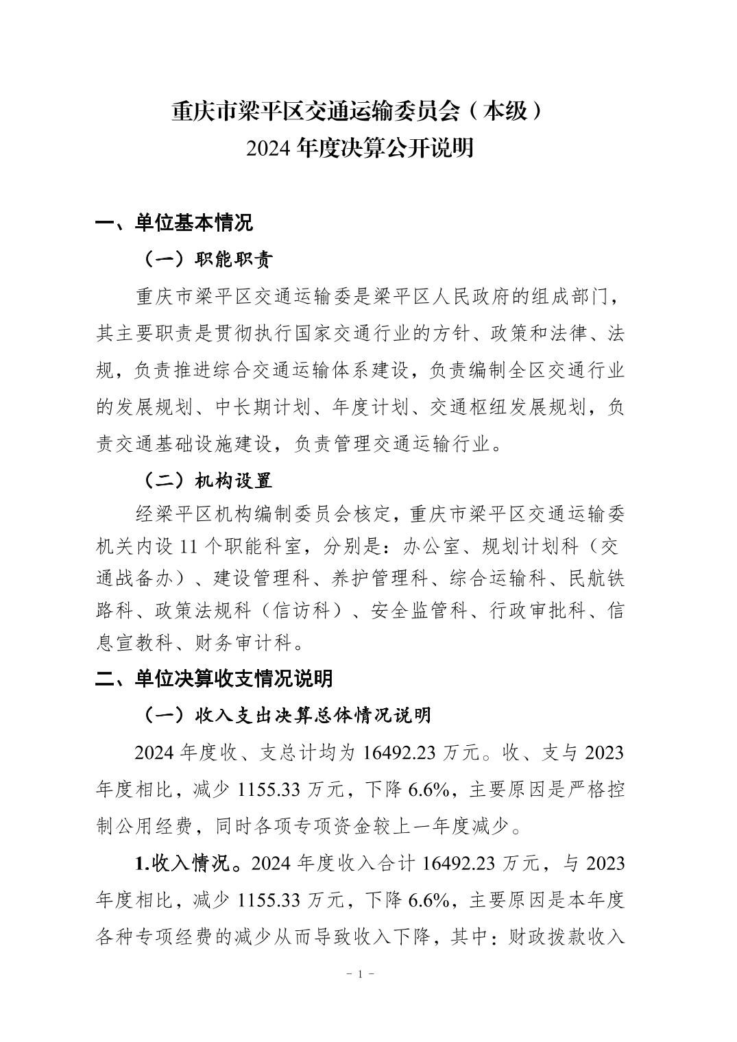 标题 | 重庆市梁平区交通运输委员会(本级)2024年度决算公开说明 | ||