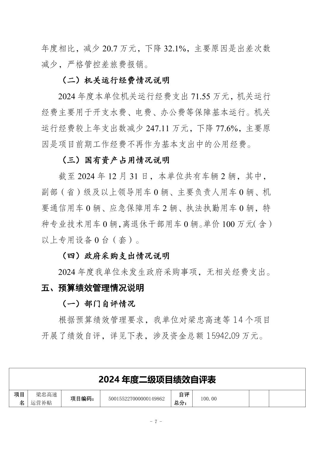 标题 | 重庆市梁平区交通运输委员会(本级)2024年度决算公开说明 |