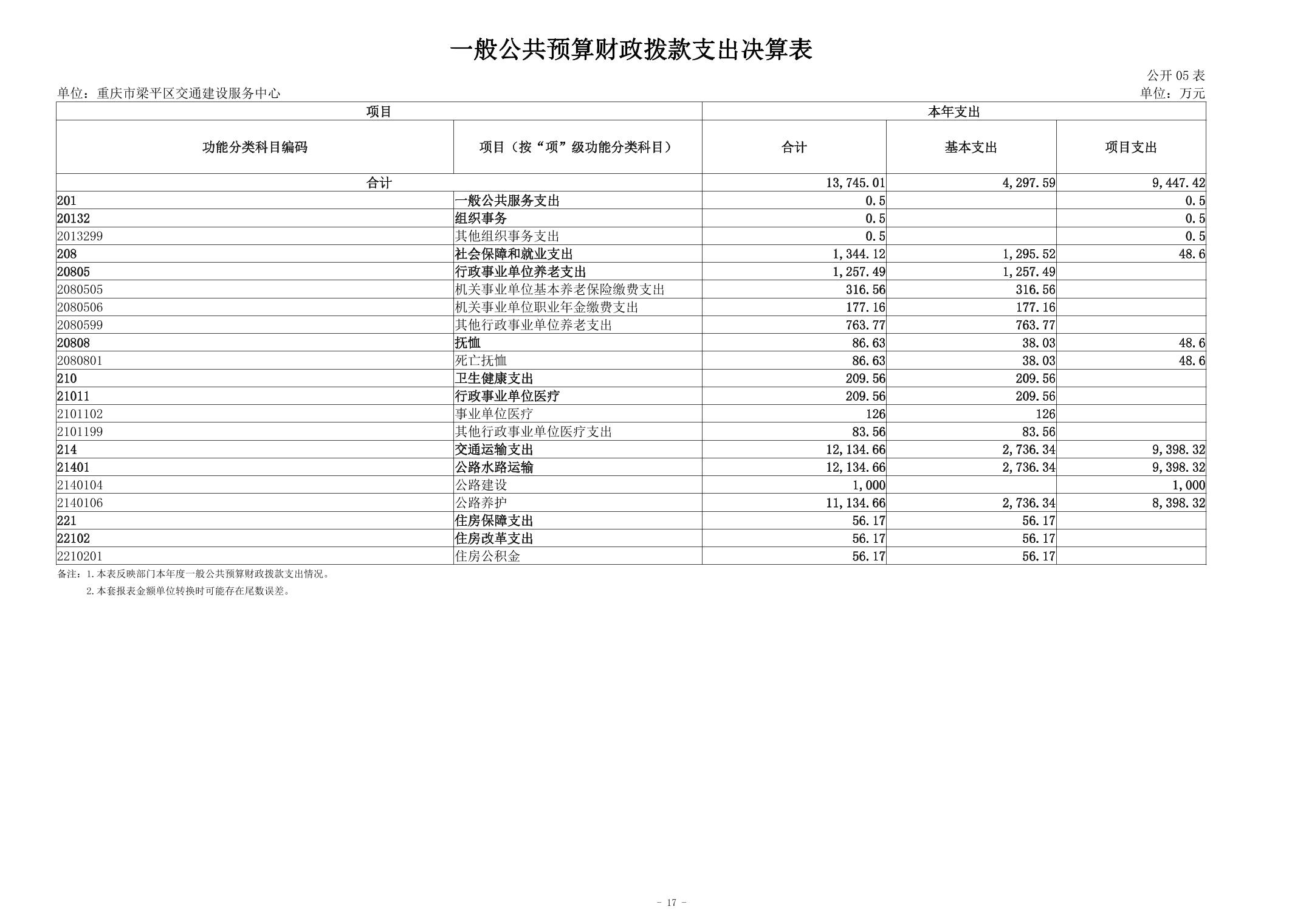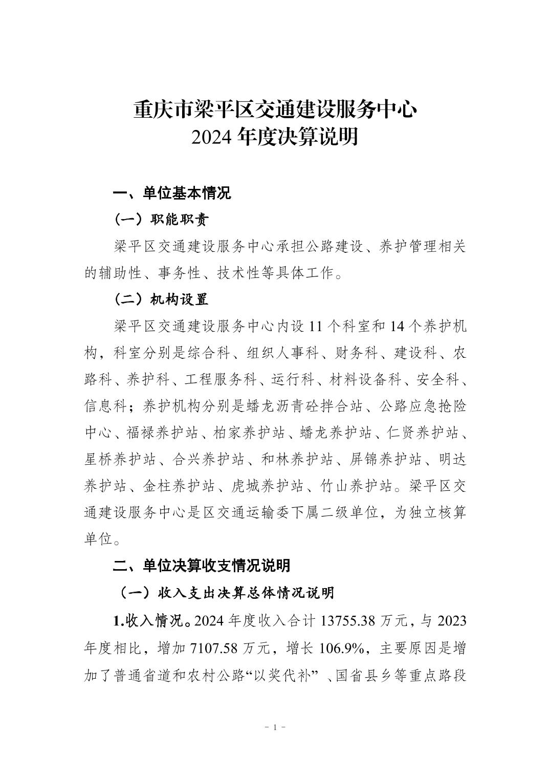 标题 | 重庆市梁平区交通建设服务中心2024年度决算公开说明 |