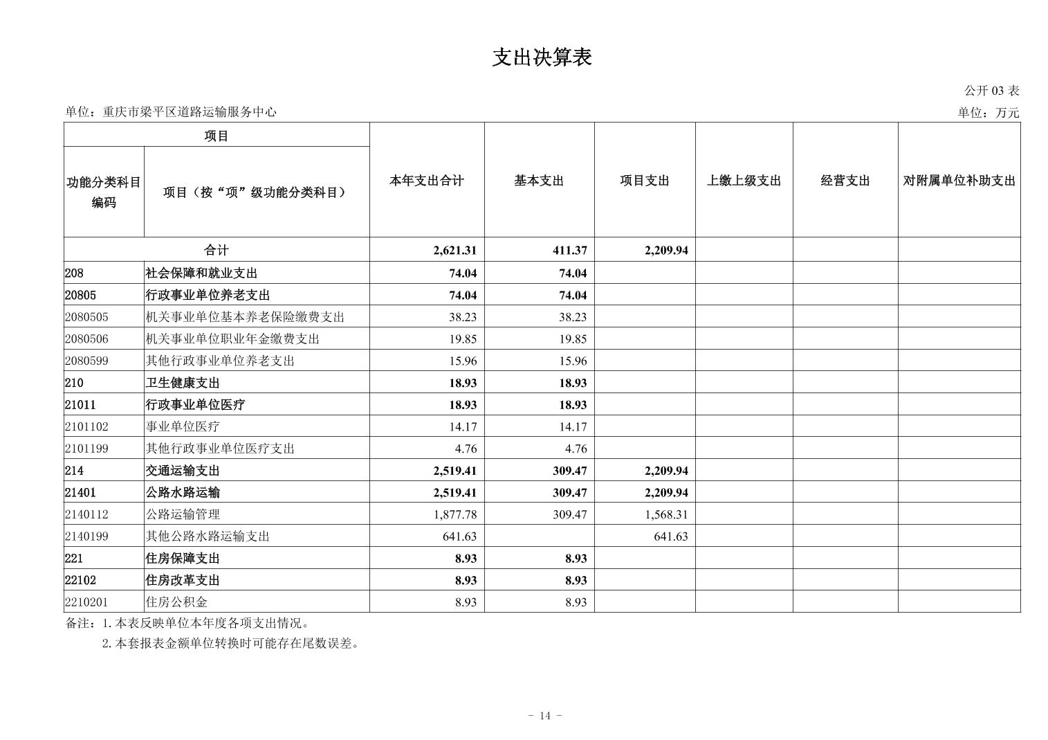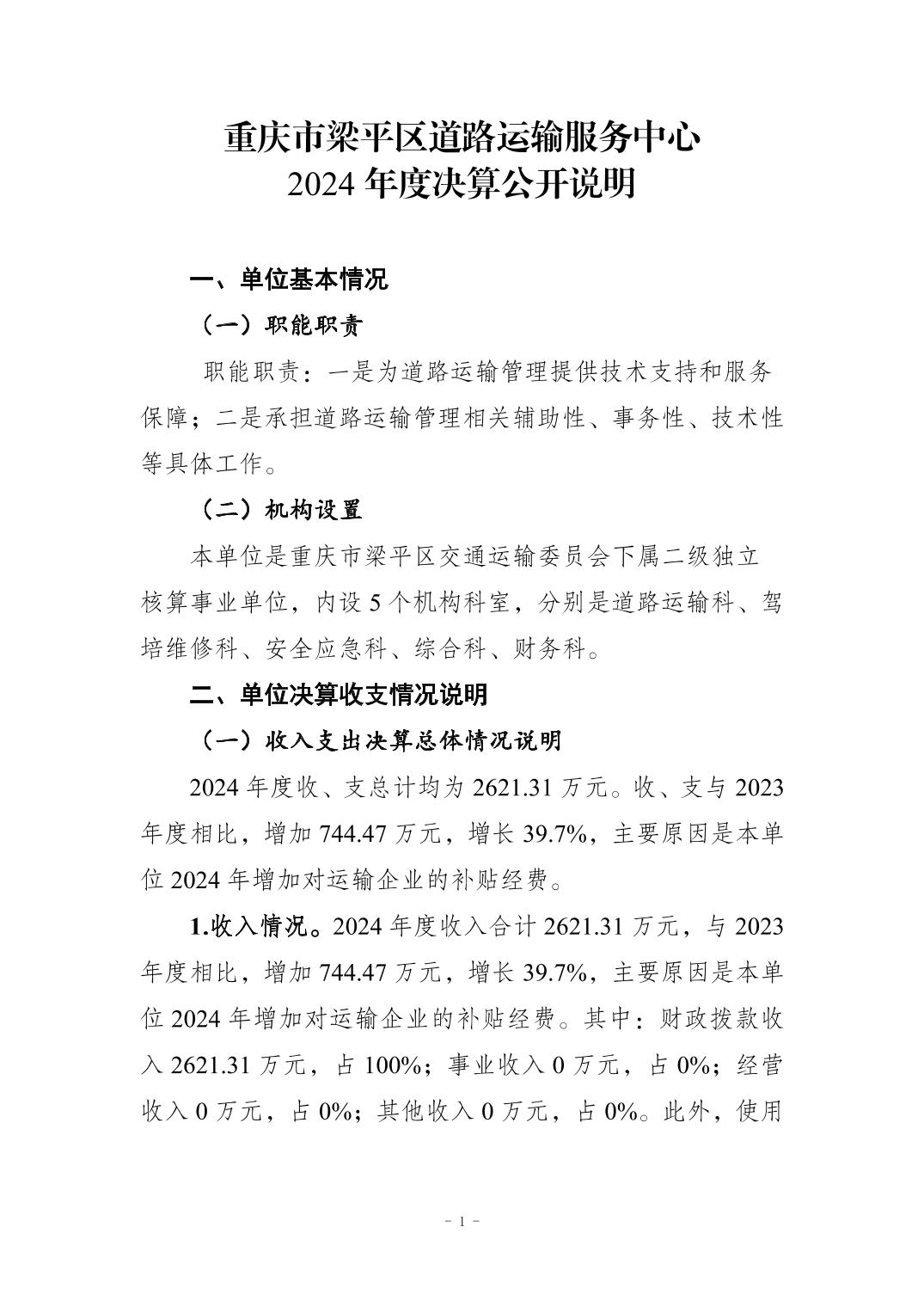 标题 | 重庆市梁平区道路运输服务中心2024年度决算公开说明 |