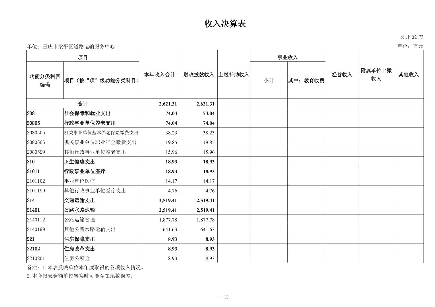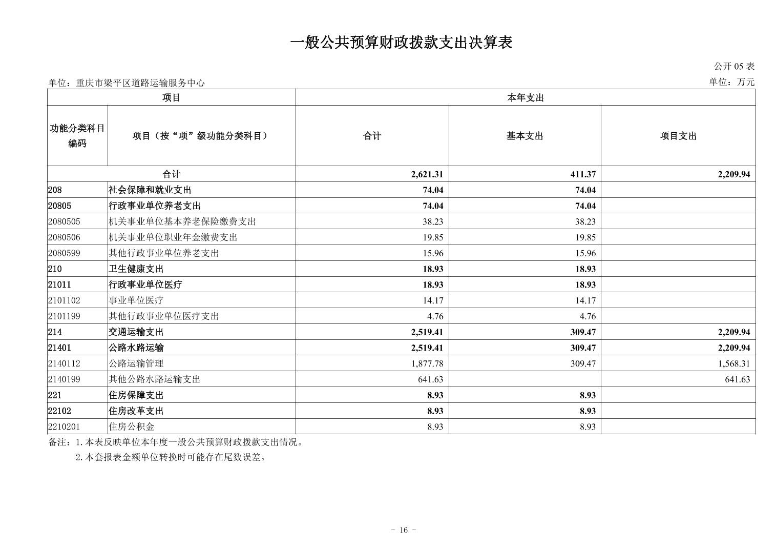 标题 | 重庆市梁平区道路运输服务中心2024年度决算公开说明 | ||