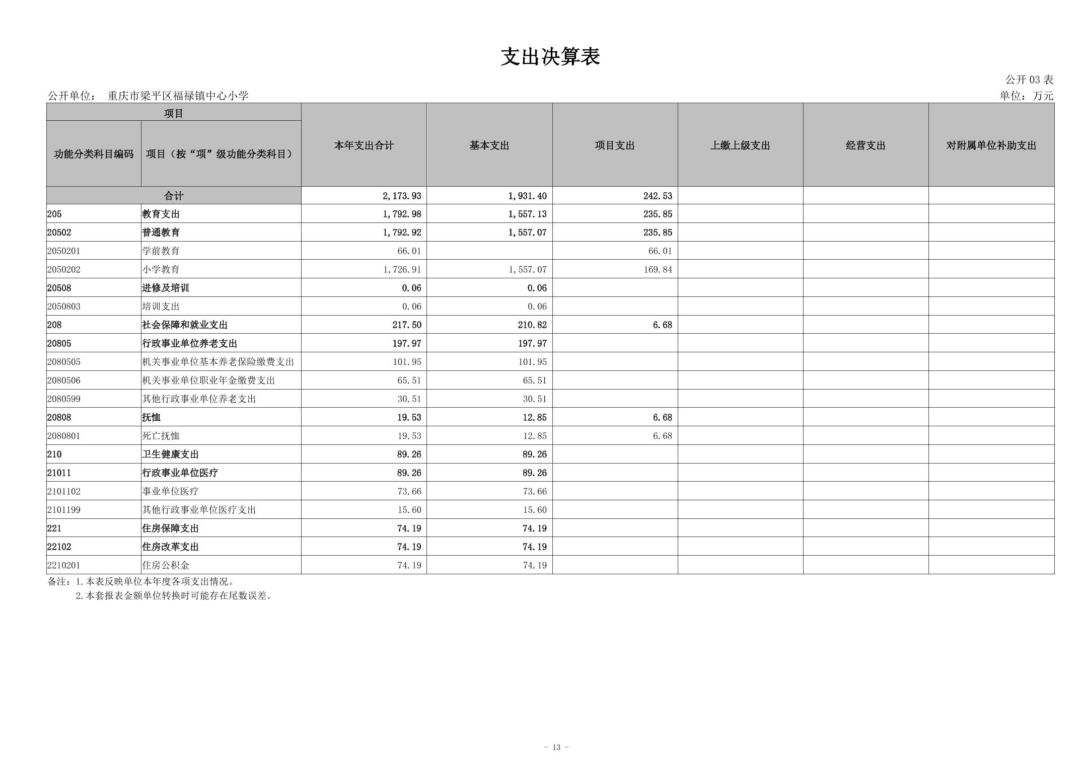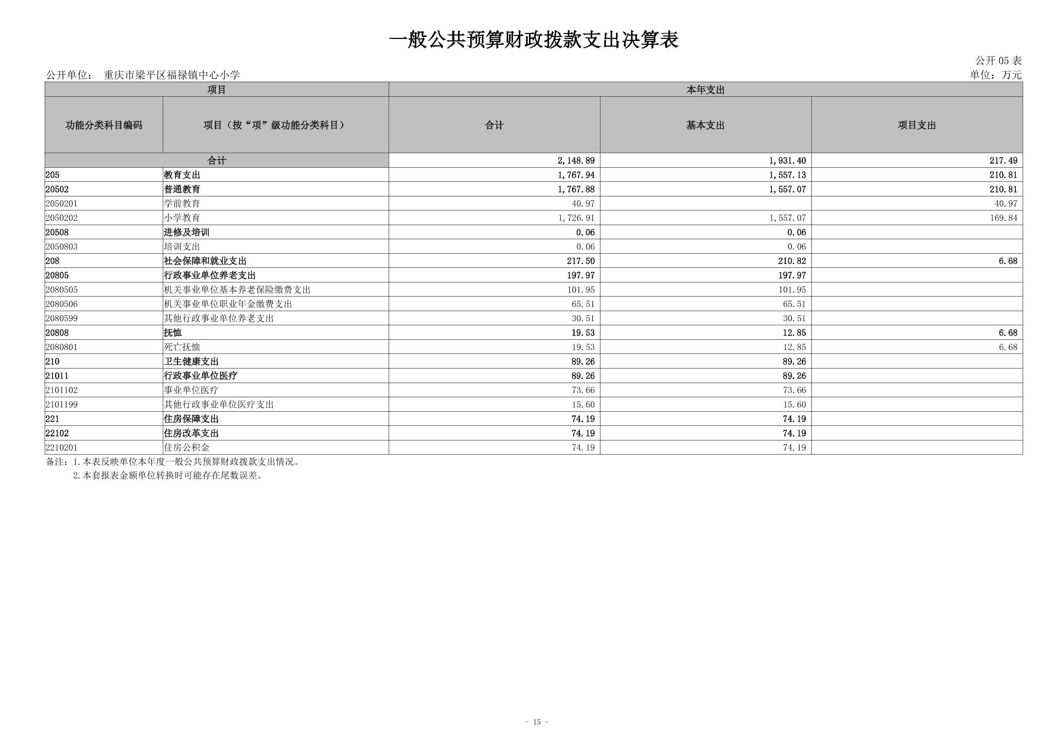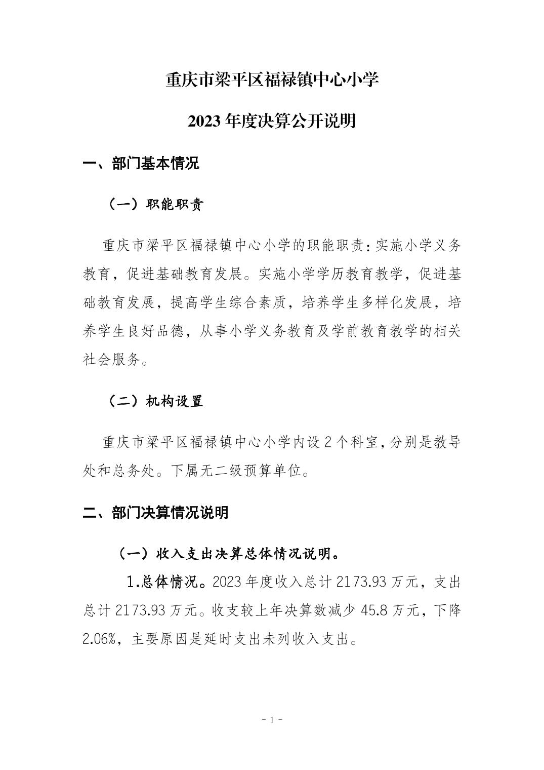 | 标题 | 重庆市梁平区福禄镇中心小学2023年度决算公开说明 |