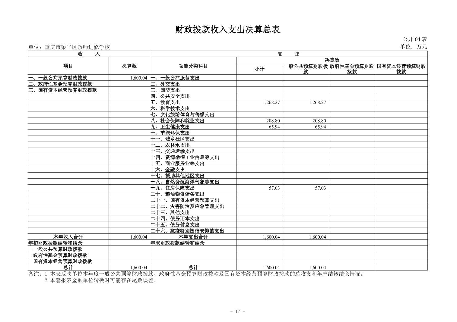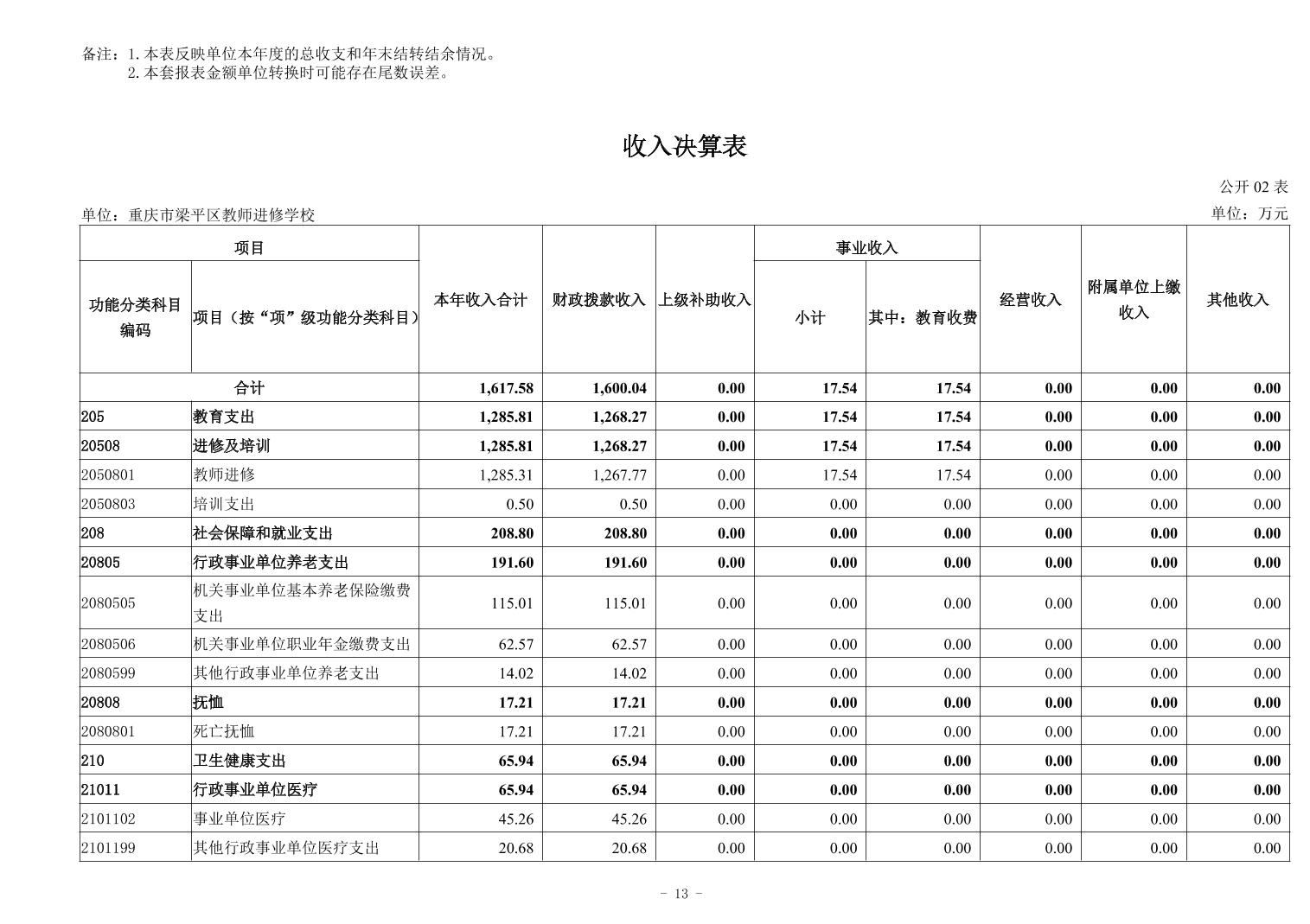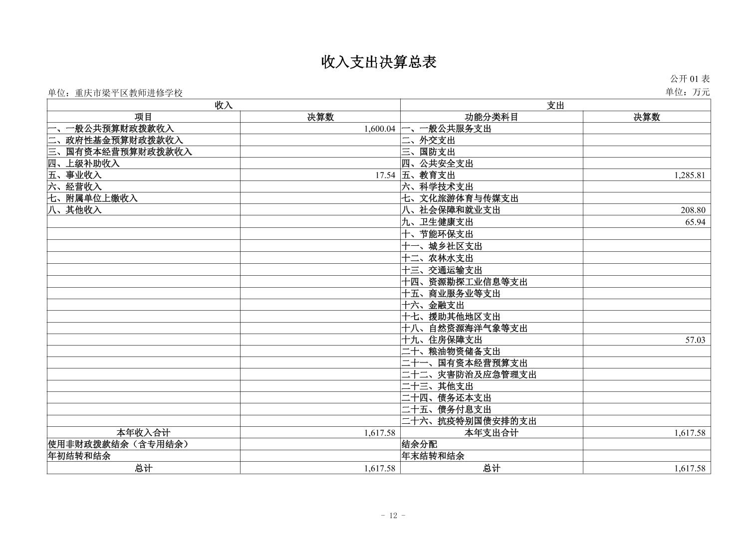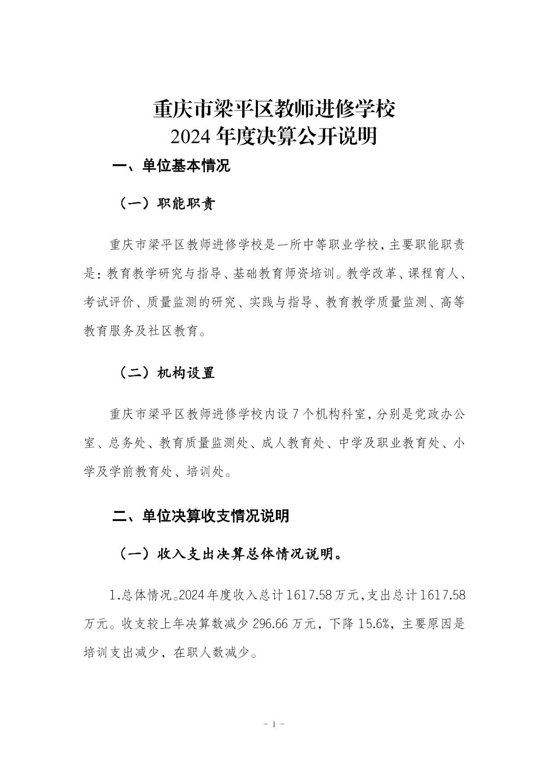| 标题 | 重庆市梁平区教师进修学校2024年度决算公开说明 |
