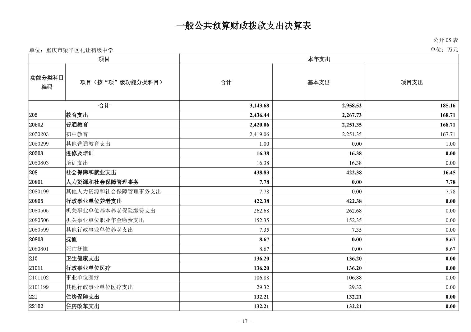 标题 | -重庆市梁平区礼让初级中学2024年度决算公开说明 |